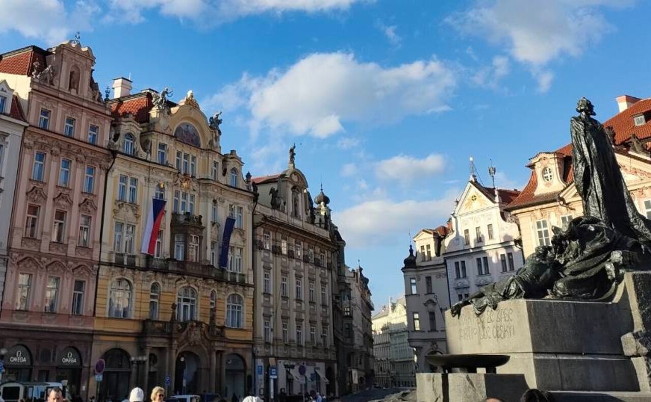 プラハの旧市街地にある広場です。人が多くて観光客でいっぱいでした。