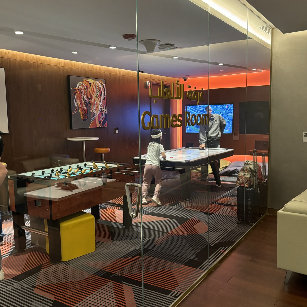 加えてゲームコーナーとしてテーブルサッカーとエアーホッケー台があるガラス張りのへやがあったり、
