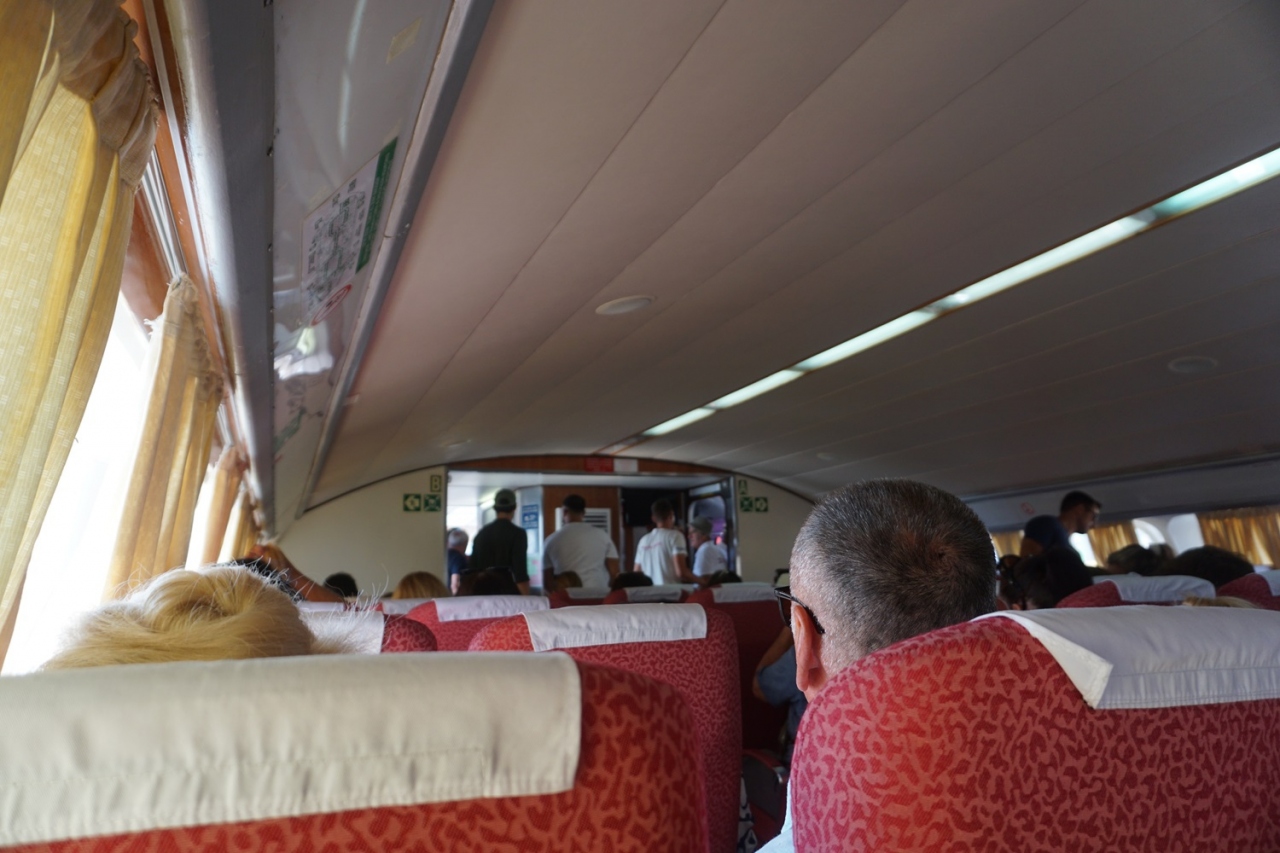 高速ジェットは室内ですが、冷房が効いていて、揺れも少ないです。