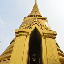 本堂の横に三つ並んでいる建物のひとつで、黄金に輝いているのですぐわかる建物です。修復したのか、金色がとても鮮やかで、ワットプラケオの中でも一番目をひく建物ではないかと思います。この塔の様式はスリランカ風ということで、他の建物とは少し違う外観でした。