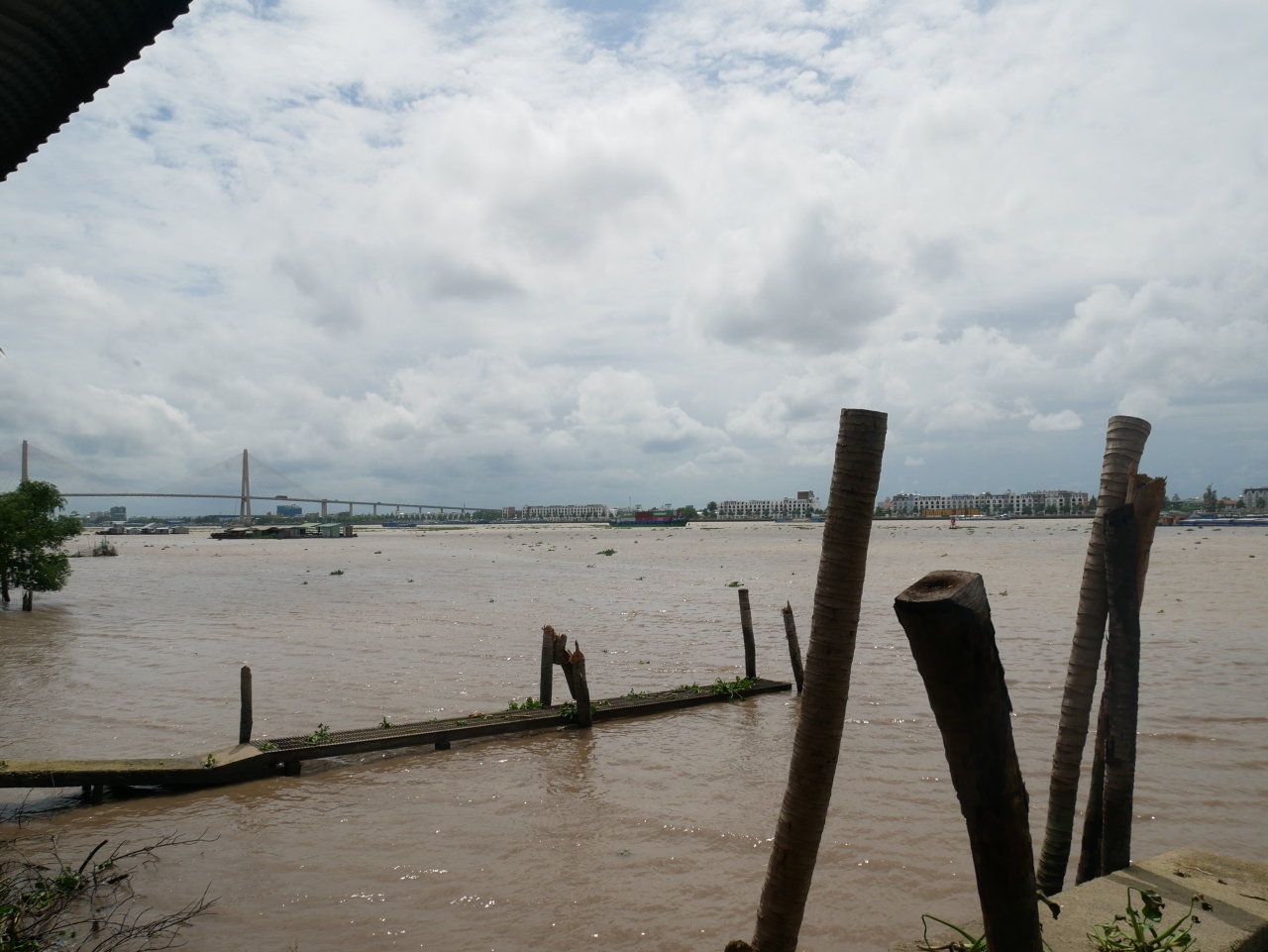 メコン川クルーズのツアーに参加した際に見かけました。ミトーの街とメコンデルタの中州のトイソン島とさらに対岸の街を結ぶ橋で、とても立派な橋でした。比較的新しい橋で、日本のゼネコンも建設に携わっていたようです。