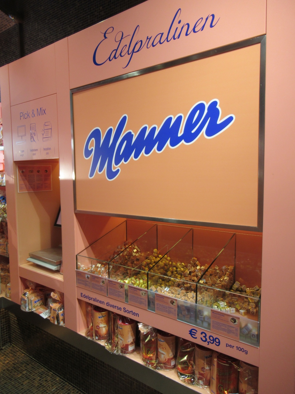 マンナーはウィーンではスーパーなどどこのお店にも置いていますが、基幹店であるシュテファンスプラッツ店では、各種マンナーや詰め合わせのほか、マンナーのロゴが入った各種のグッズも売っていました。