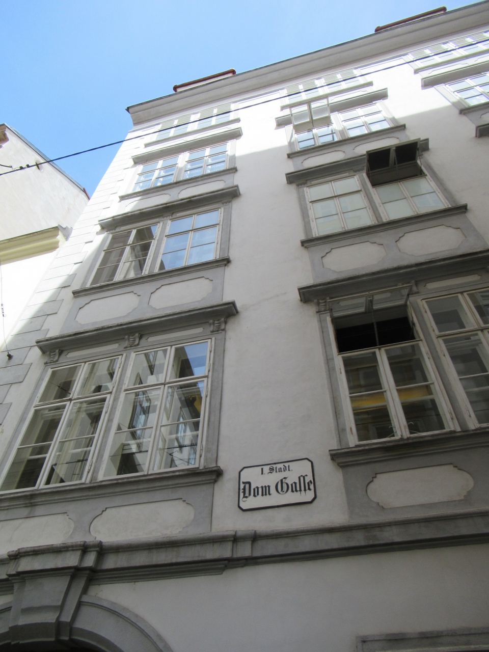 モーツァルトハウス ウィーンは、オーストリアの首都ウィーンのシュテファン大聖堂北側のシュテファンプラッツを東に50mほど進んで先にありますが、入口は回り込んだ反対側にありました。