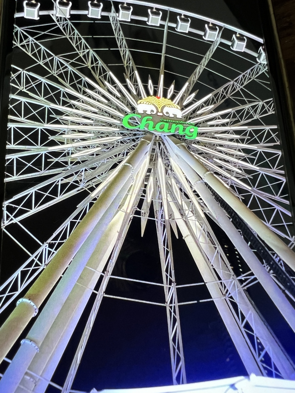 夕方から開かれるナイトマーケットで、サトーン船着き場から無料のシャトルボートで行きました。雑貨屋や飲食店、観覧車、回転木馬、お化け屋敷もあってちょっとしたテーマパークみたいでした。スーパーマーケットもあって、お土産を買いました。