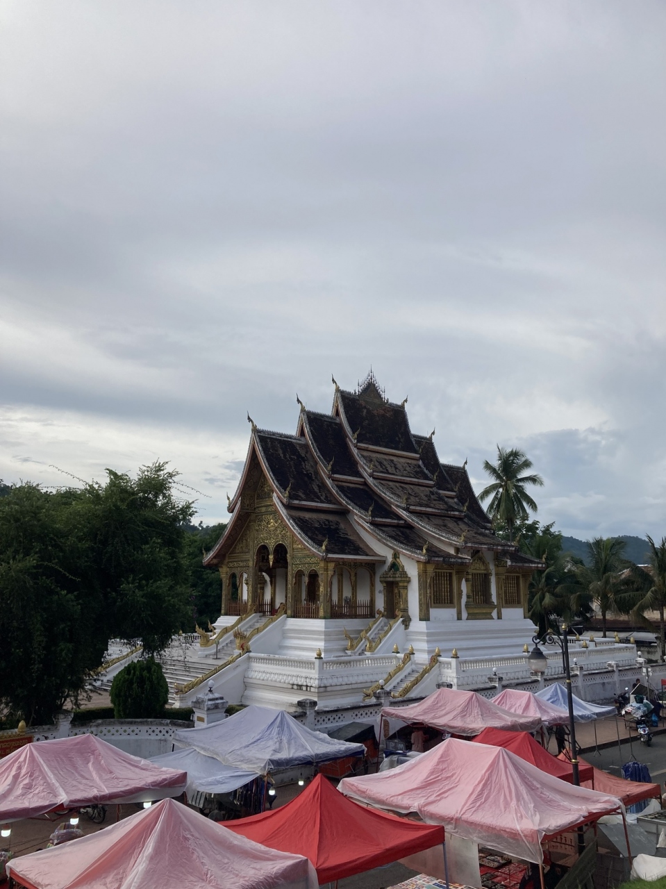 丘への階段から夜に見ると、祠とナイトマーケットのテントの灯りがとてもきれいでした。