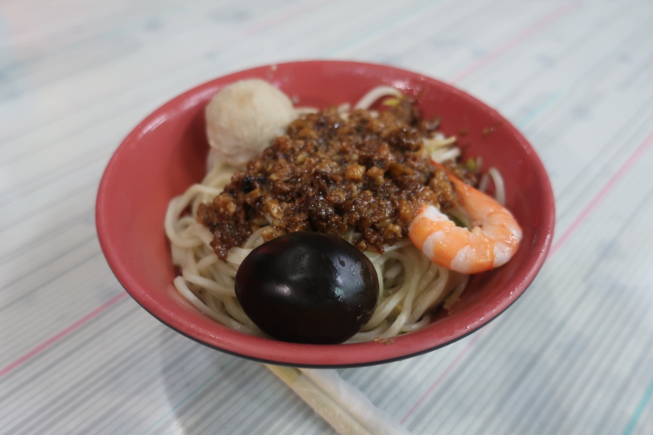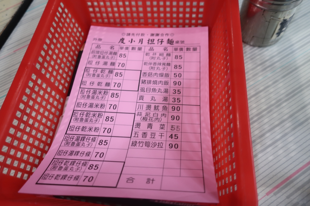 赤崁楼の隣にあるタンツーメン発祥の店といわれる度小月です。三代祖伝百年老店と看板に書いてあり老舗の店のようです。オープンエアタイプの店で、注文票に書いて渡す台湾方式なので、わかりやすいです。湯麺と乾麺がありますが、麺の違いではなく、湯麺はラーメンのようなスープタイプ、乾麺は冷やし中華のようなたれをかけたタイプです。