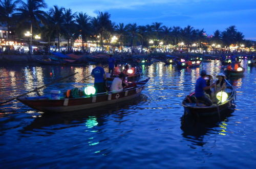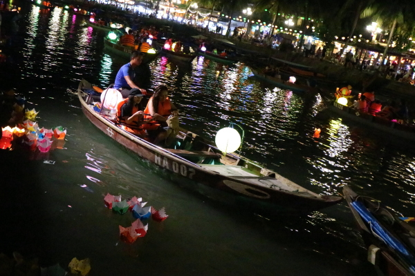 昼に川沿いへ行くと、観光客がまばらでのんびり歩けて良い散歩となった。が、夜は小舟と観光客でごったがえしていた。橋のうえで写真をとろうものなら、後ろから押され、川に落ちそうになった。しかし、提灯や灯籠・・・とてもカラフルで異世界を感じる観光となった。