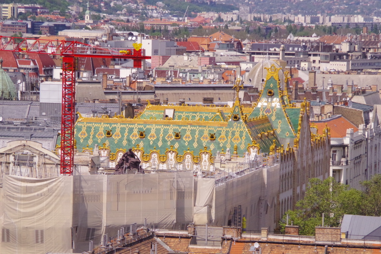 聖イシュトヴァーン大聖堂の展望台から、この郵便貯金局の素敵な屋根の装飾が見えます!