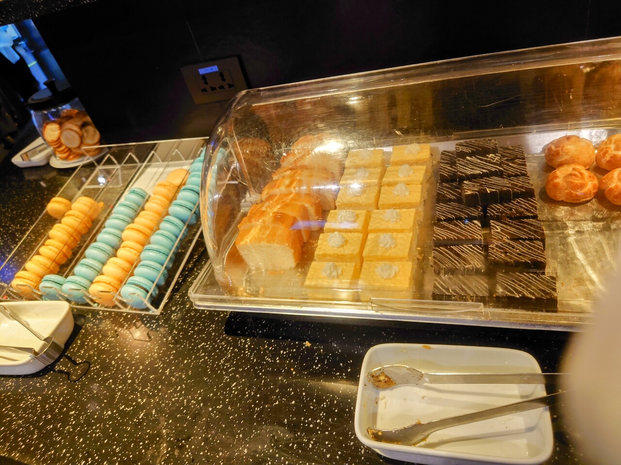 ボロネーズスパゲティを頂き、デザートが美味しいエールフランスラウンジ。深夜だったからかエクレアとソルベがなかったのが残念。