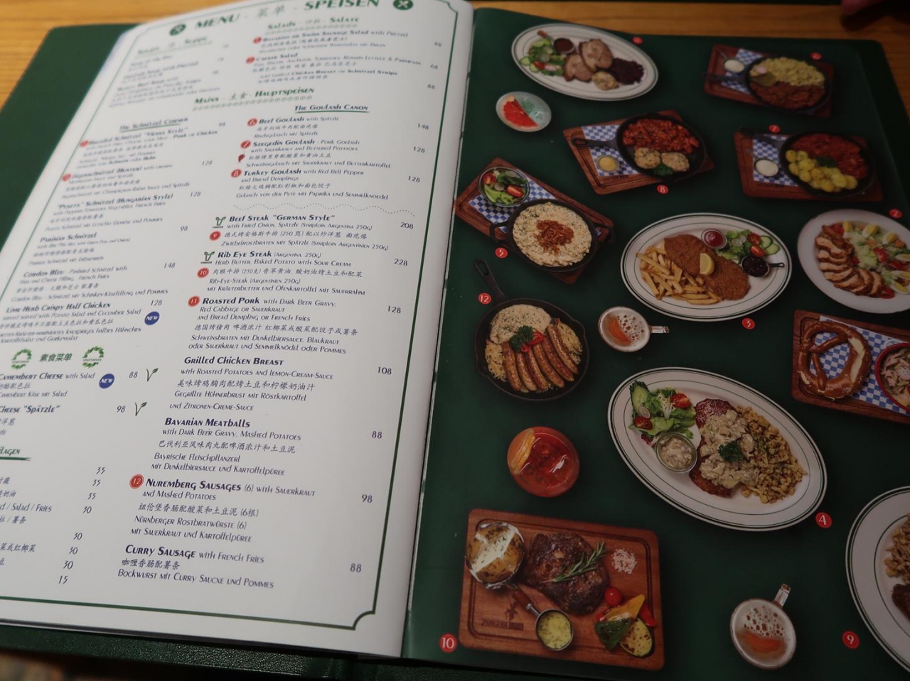 メニューを開くと、ドイツ系料理のほか、一般的西洋料理も勢ぞろい。