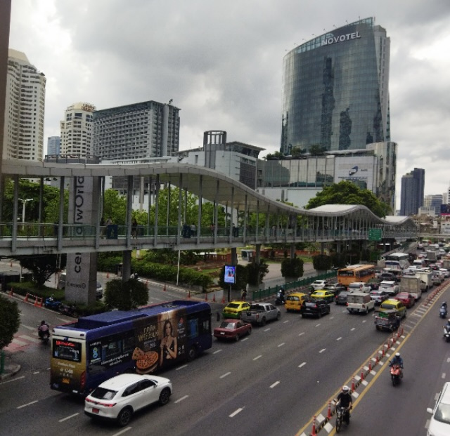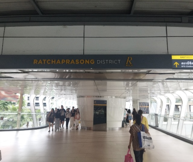 BTSチットロム駅で降りると、すぐそばのセントラルチットロムにつながっている出口のほうではなく、反対側に出ると、スカイウォーク(R walk)という表示が見え、歩道橋が長く連なっています。右にゲイソーン、左にエラワンやハイアットとつながっており、まっすぐに行くとサイアム駅にもつながっています。(途中で右手にアップルの建物やセントラルワールドもあります)。ゲイソーンの中からはまた、ビッグCやホテル棟ともつながっていて、幅広いジャンルのものと縦横無尽につながっている感じです。特に雨降りのときなど、あまり濡れずに移動ができてよいです。