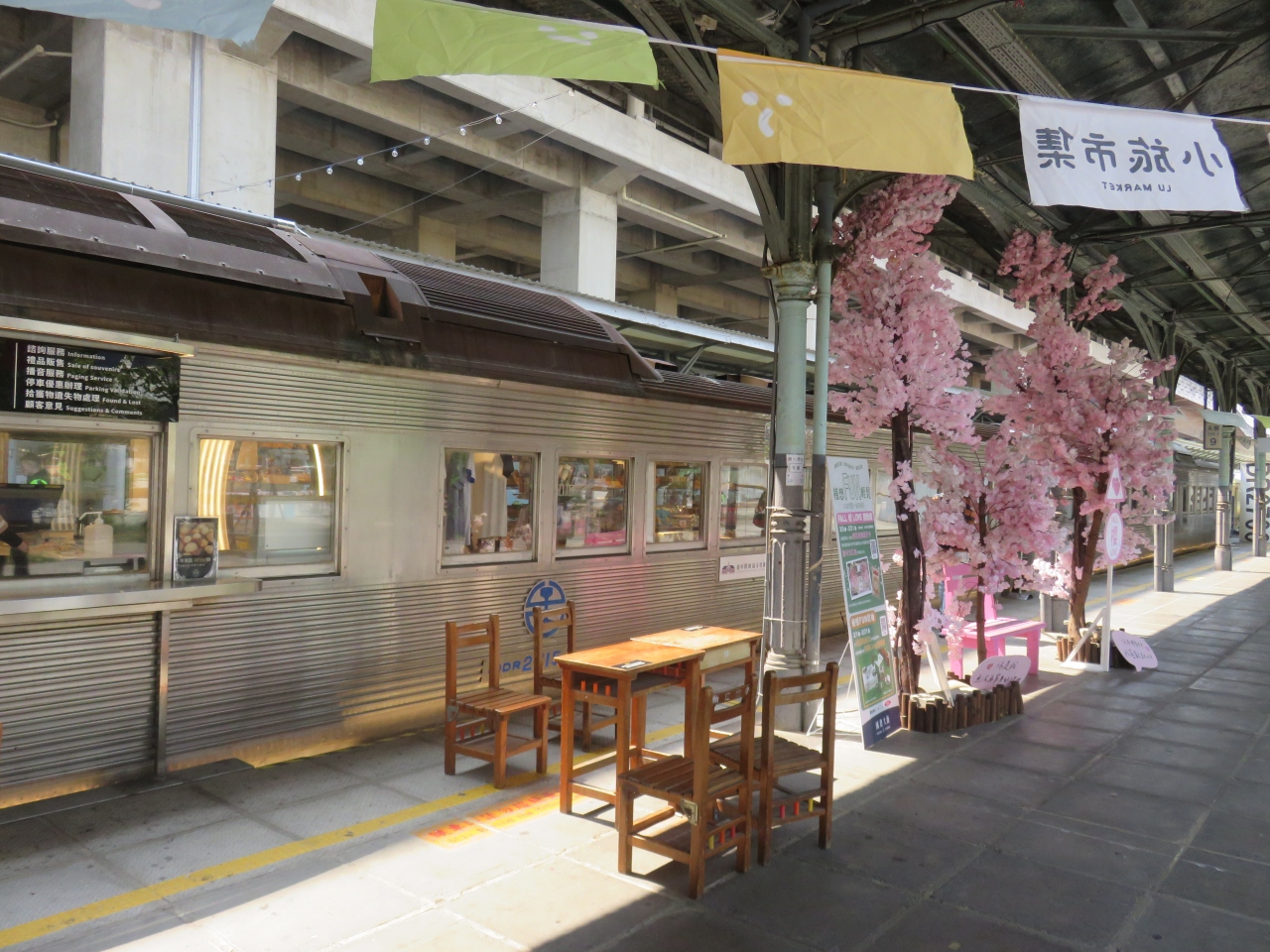 台鉄台中駅は新旧の駅舎が並ぶちょっと珍しい構造で、東京駅にそっくりな駅舎になっていました。この旧台中駅舎にはグルメやショッピング、レジャーが楽しめるエリアが新設されていて、この日、旧プラットホームでは青空マーケットが開催される事もあるようです。