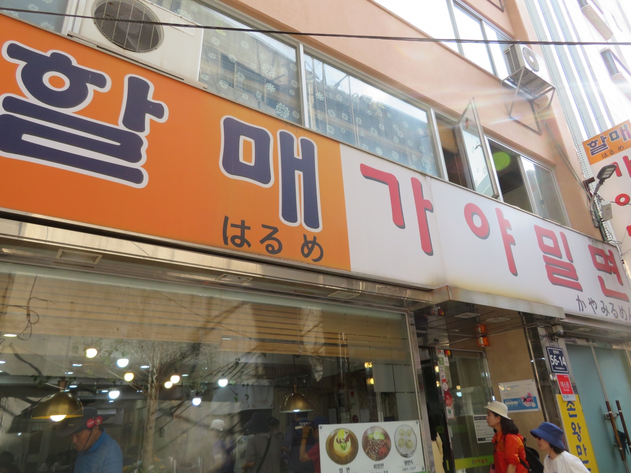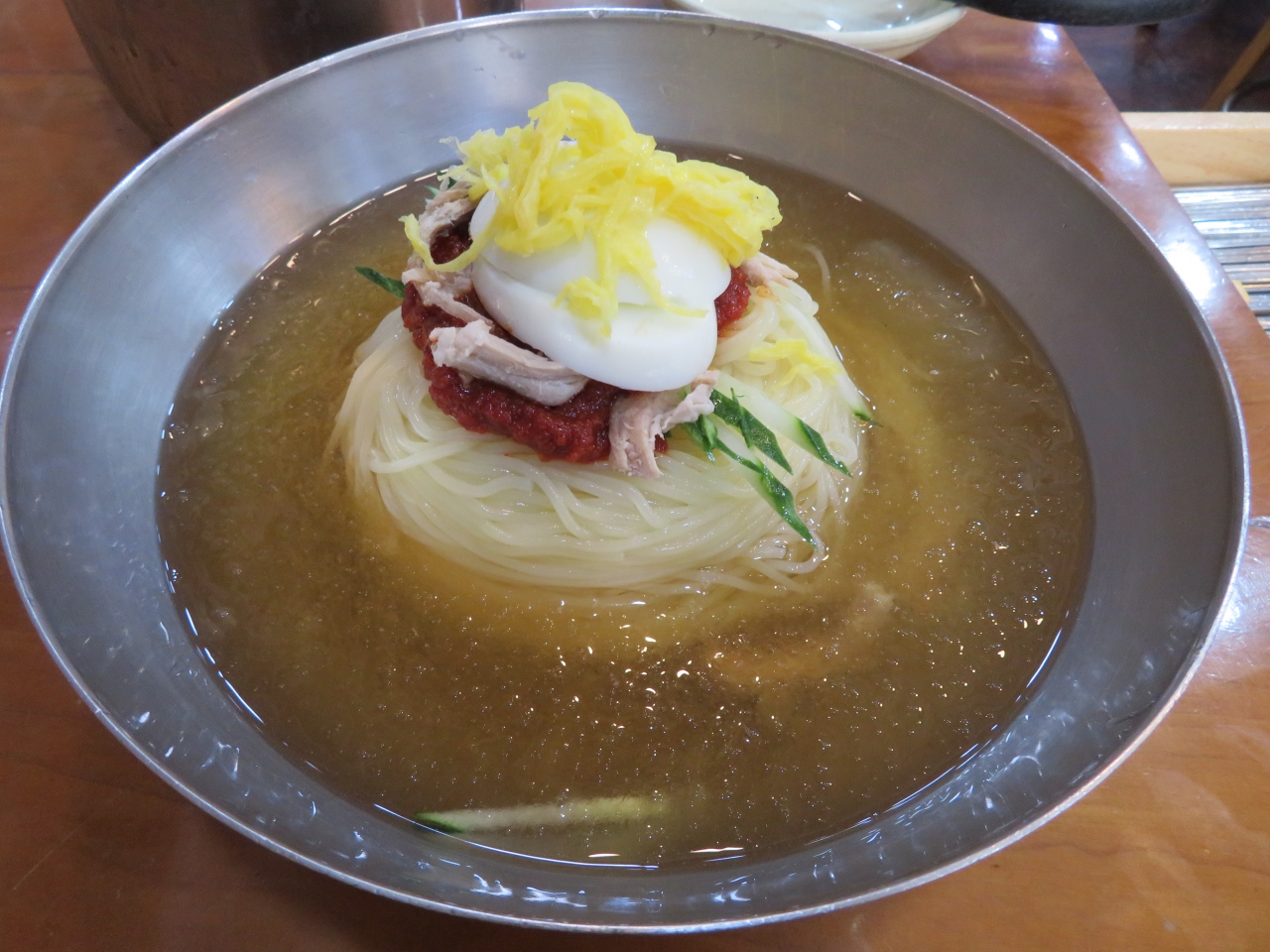 冷麺のようなミルミョン釜山の名物料理と聞いて行ってみました。混雑時間を外し16時ころだったのですが待つことはなくても席は8割ほど埋まってました。広い店内なのにびっくりです。注文すると先に支払いを済ませて待つスタイル。食べてすぐに出ていく人が多くて回転は早かったですね。
