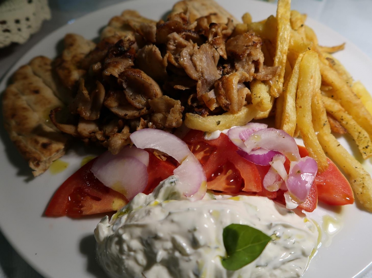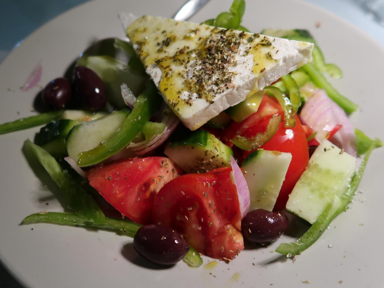 私たちは軽い夕食で行ったので、グリーク・サラダとギロス(ギリシア風焼肉)のプレートを取ってシェア。