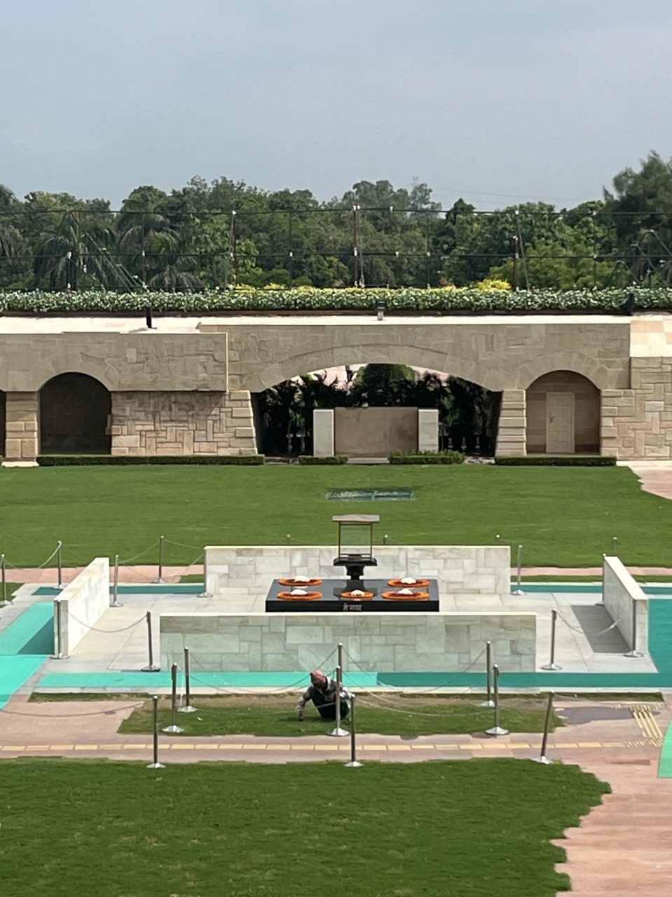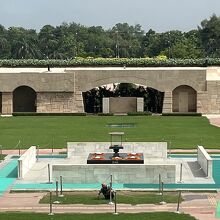 ガンジーさんが亡くなった後の遺灰の一部を祀ってあるお墓があります。(遺灰のほとんどはガンジス川に流されたそうです。)お墓の近くまで行って写真が撮れるのですが、靴を脱がないといけません。夏は水撒きとかしているので、足が濡れちゃいます。足が濡れるのが嫌な方は、ちょっと離れたところからのフォトスポットもあります。