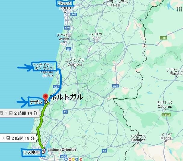 ポルトガルでリスボン→ナザレ→フィゲイラ・ダ・フォズ→ポルトへとバスで西海岸沿いを北へ進移動しました。