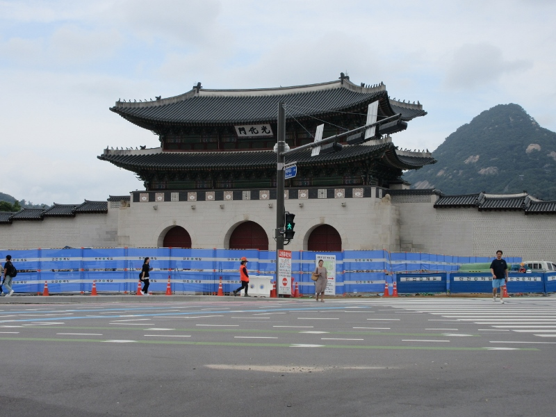 景福宮の正門なので近寄りたかったのですが、工事中で迂回しなければなりませんでした。この門を通っての入場はできませんでした。前にソウルに来た時に通ったはずですが、あまり記憶にありません。迂回して大回りをしなくてはならないのが残念でした。