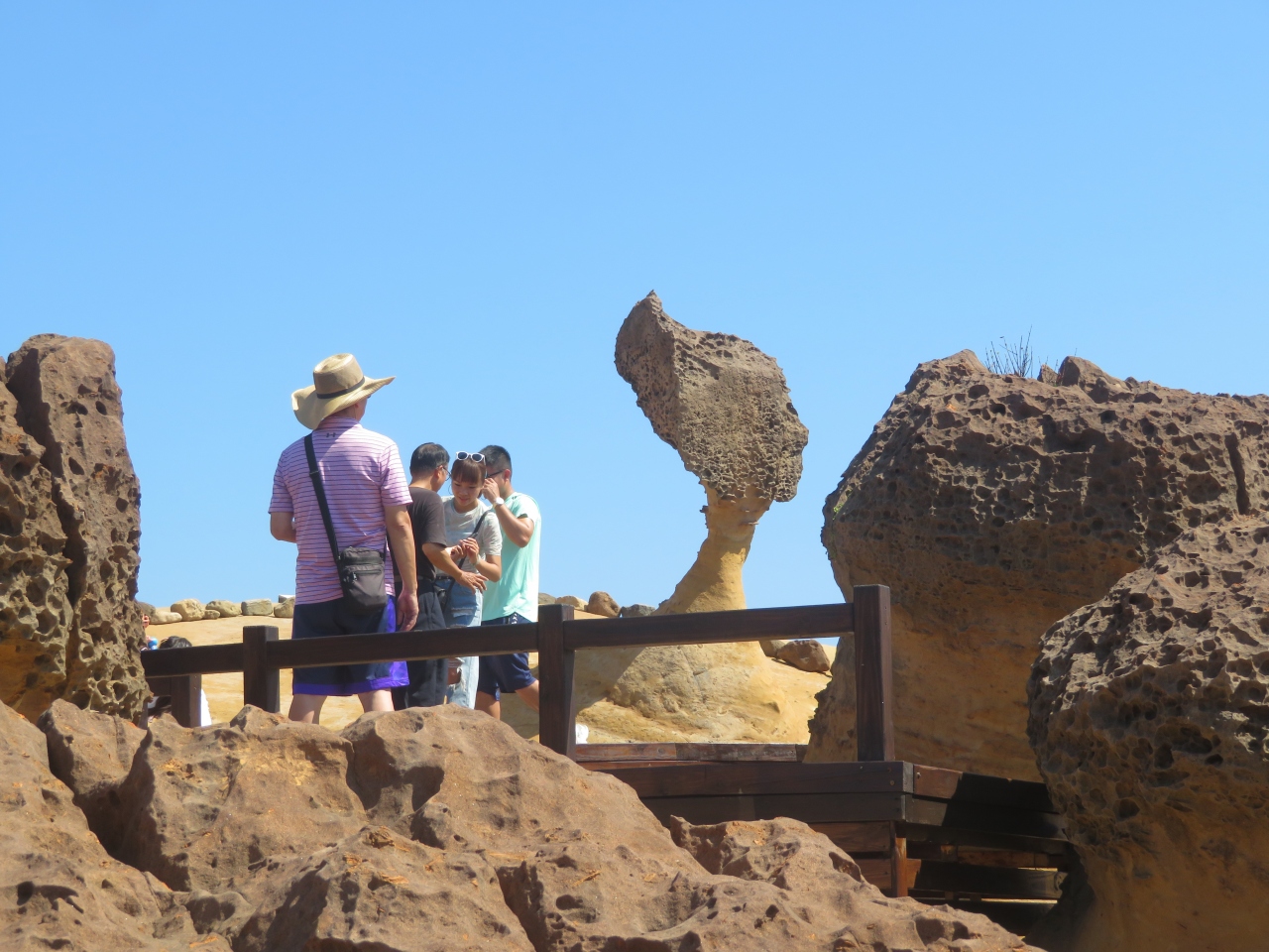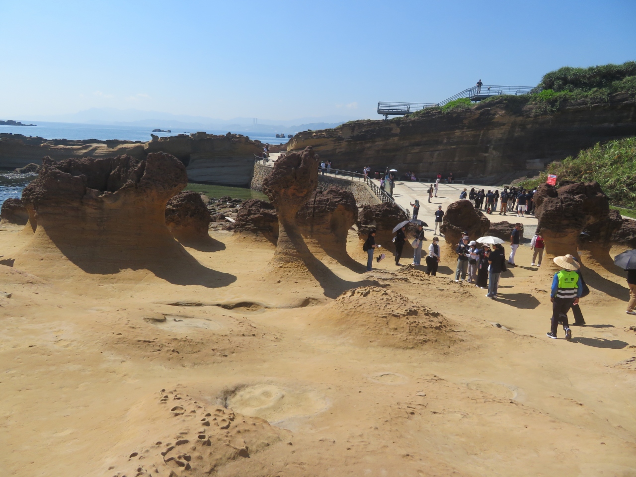 入口のところに売店やトイレがありますが、公園内にはありません。木陰のあるところも少なく、夏場には日よけグッズは必須です。有名な女王頭の岩の前では写真撮影の列ができます。他にも変わった形の石やウニの化石などが見られます。第3エリアの奥は、専門ガイド月ツアーで訪れることができます。夏場は朝に見学するのがおすすめです。