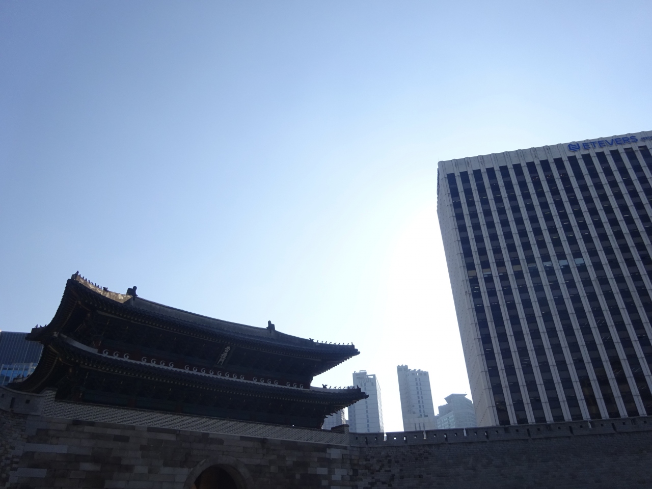 ソウルの崇礼門 (南大門) です。車の往来が激しいような道路沿いにあるので、普通に移動する際に目に入りやすいかなと思います。ソウル駅からも徒歩で行けますし、シティホール辺りを南下すると割とすぐです。日中に見ても夜に見ても立派だなと思います。