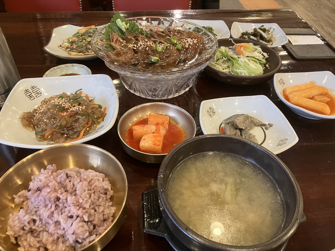 久しぶりにカンジャンケジャン食べたいと調べて選んだ店なのに(リーズナブルな価格とは思いますが)やっぱり高いのでカンジャンセウ定食。一人でいってもたくさんの皿が並び、なのにメインもしっかり、食べ応えたっぷりで欲は満たされます。