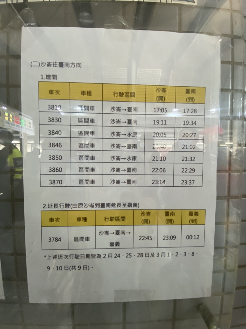 沙崙駅から台鐡台南駅までは25分位。本数は1時間に2便かせいぜい3便と少なめ。