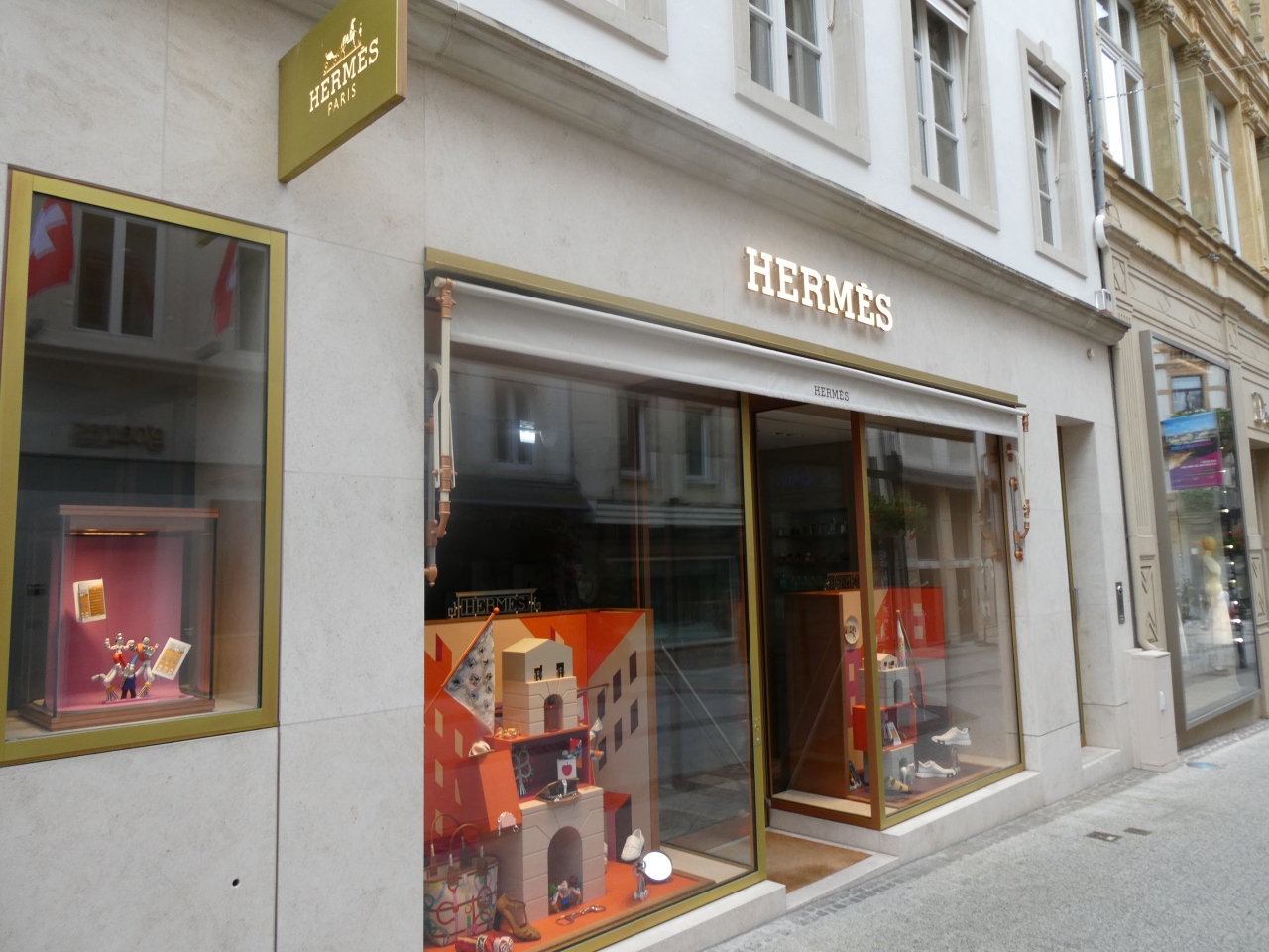 旧市街を南北に走るフィリップII通り沿いにエルメスがあります。近くにシャネル、ルイヴィトン、グッチなどがあり、まさに高級ブティック通りの様相です。