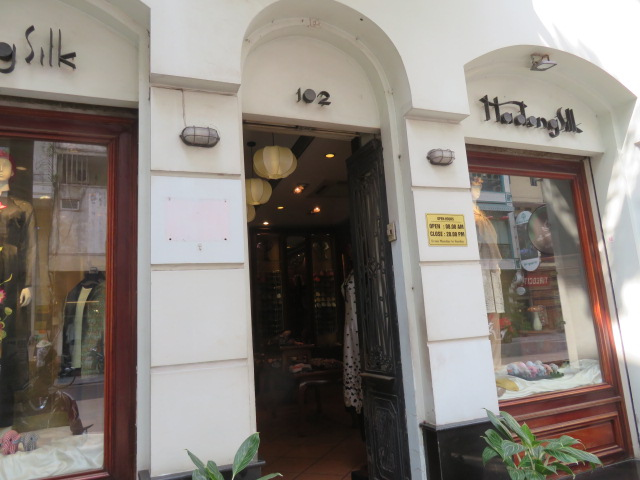 ホエンキエム湖の北側のショッピングストリートのハンガイ通りにあります。白い外観で、ショーウィンドウも洗練された雰囲気です。お店に入ると、鮮やかな色のシルクが並んでいて、手触りも良く、このお店のシルクなら間違いなしです。
