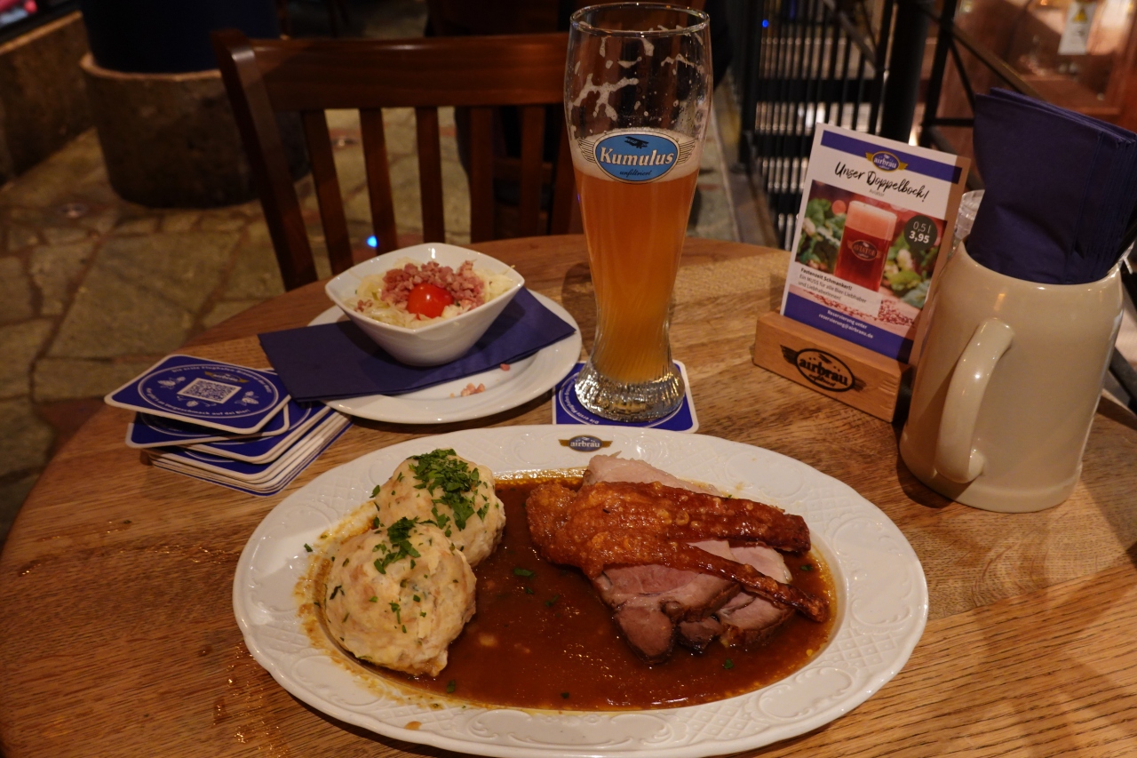 ミュンヘン空港のターミナルを出て直ぐのところにあるレストラン、入国しない乗り継ぎの場合は訪問不可。珍しい空港醸造のビール及びバイエルン料理を提供、いつも混みあっている印象。名物のソーセージ等もあり価格もリーズナブル