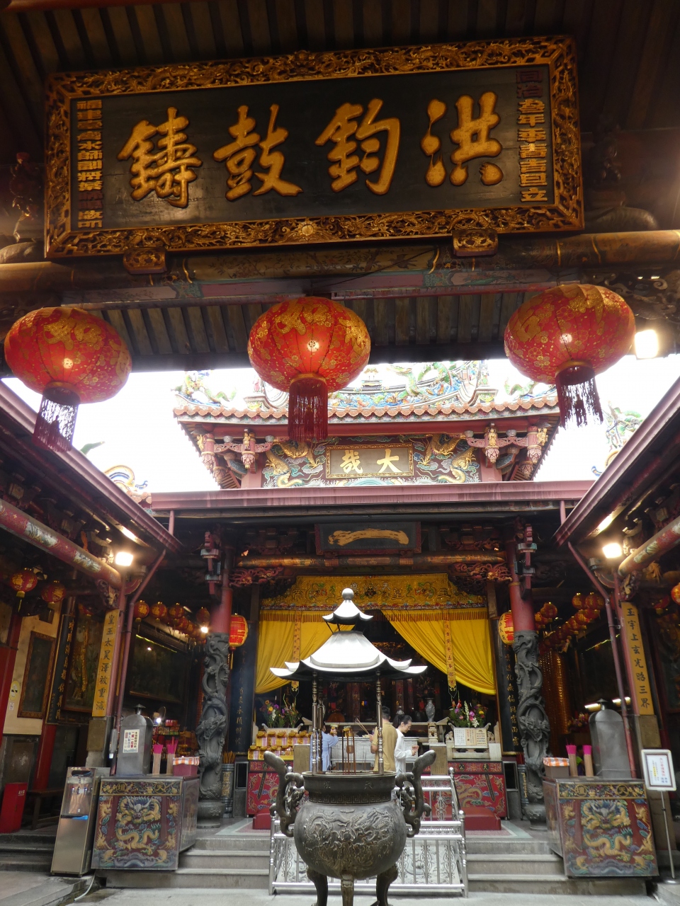 らに奥にあるのが台南三大名扁に並べられる「一」の字の扁額で台湾で最も美しい「一」といわれていて、その意味は「千算万算、天の一算に如かず(人間がいくら思案しても、天の思案には及ばない)」ということだそうです。
