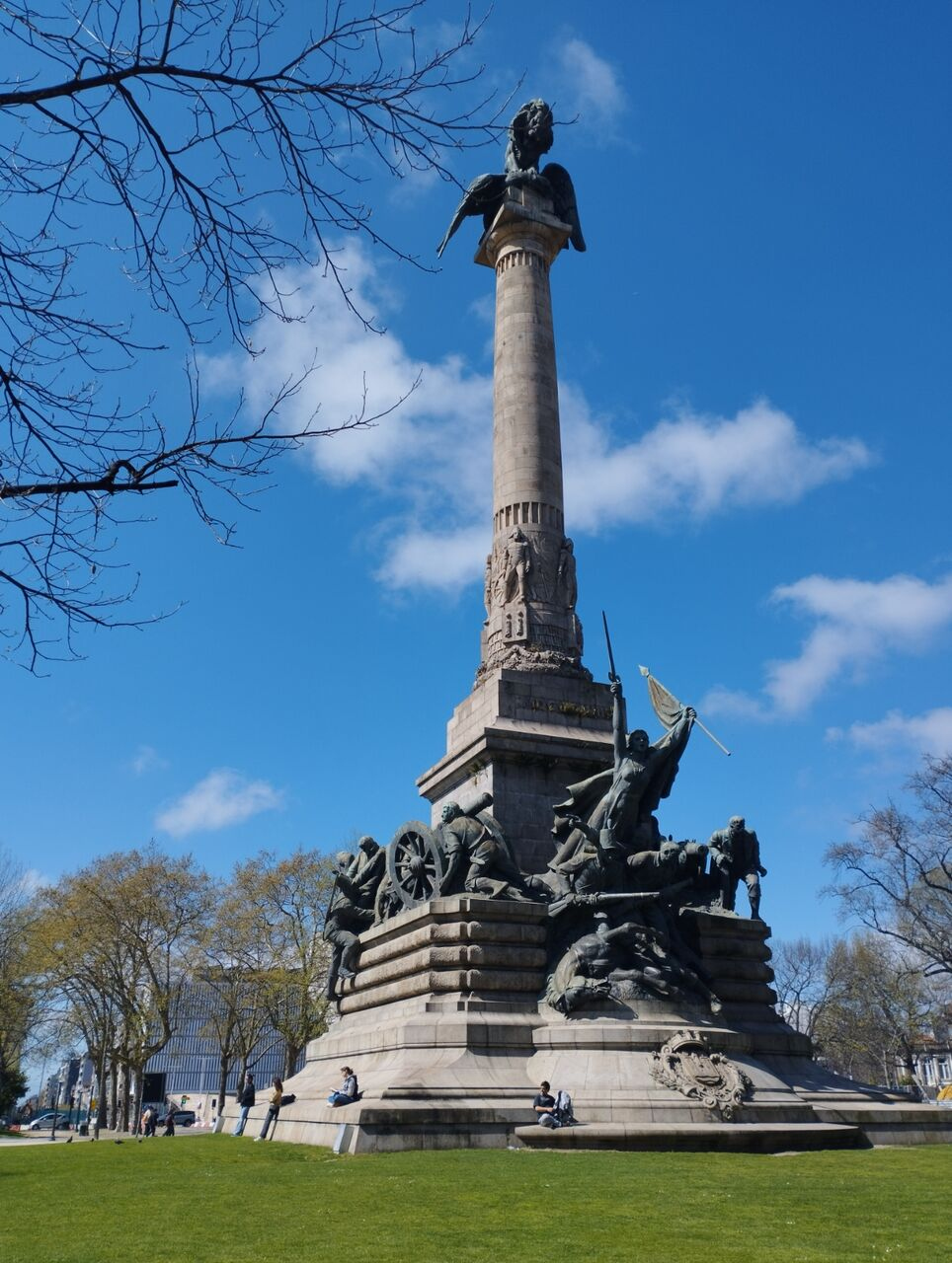 高さ45mの記念碑の一番上はワシを組み敷くライオンの彫刻。ワシはナポレオンのフランス帝国の象徴、ライオンはポルトガル人の勝利を助けるために兵士を送ったイングランドの象徴です。正面には、人々を導く勝利の女神、左手に国旗、右手には剣を持っています。