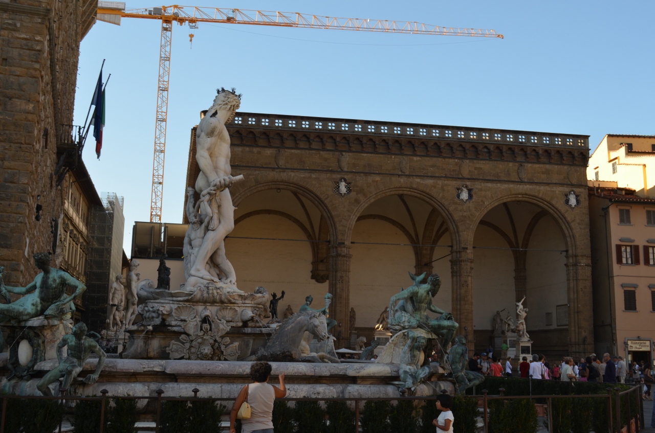このシニョーリア広場はフィレンツェ旧市街の中心に位置しています。近くにはウフィッツィ美術館やジョットの鐘楼などもあり、この広場そのものも世界遺産に相応しい歴史的な建築です。歴史の中を歩く、という感じです。