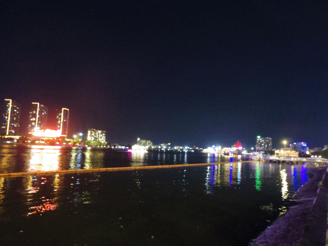 川沿いのプロムナードはのんびりとしていて、夜風が涼しいです。