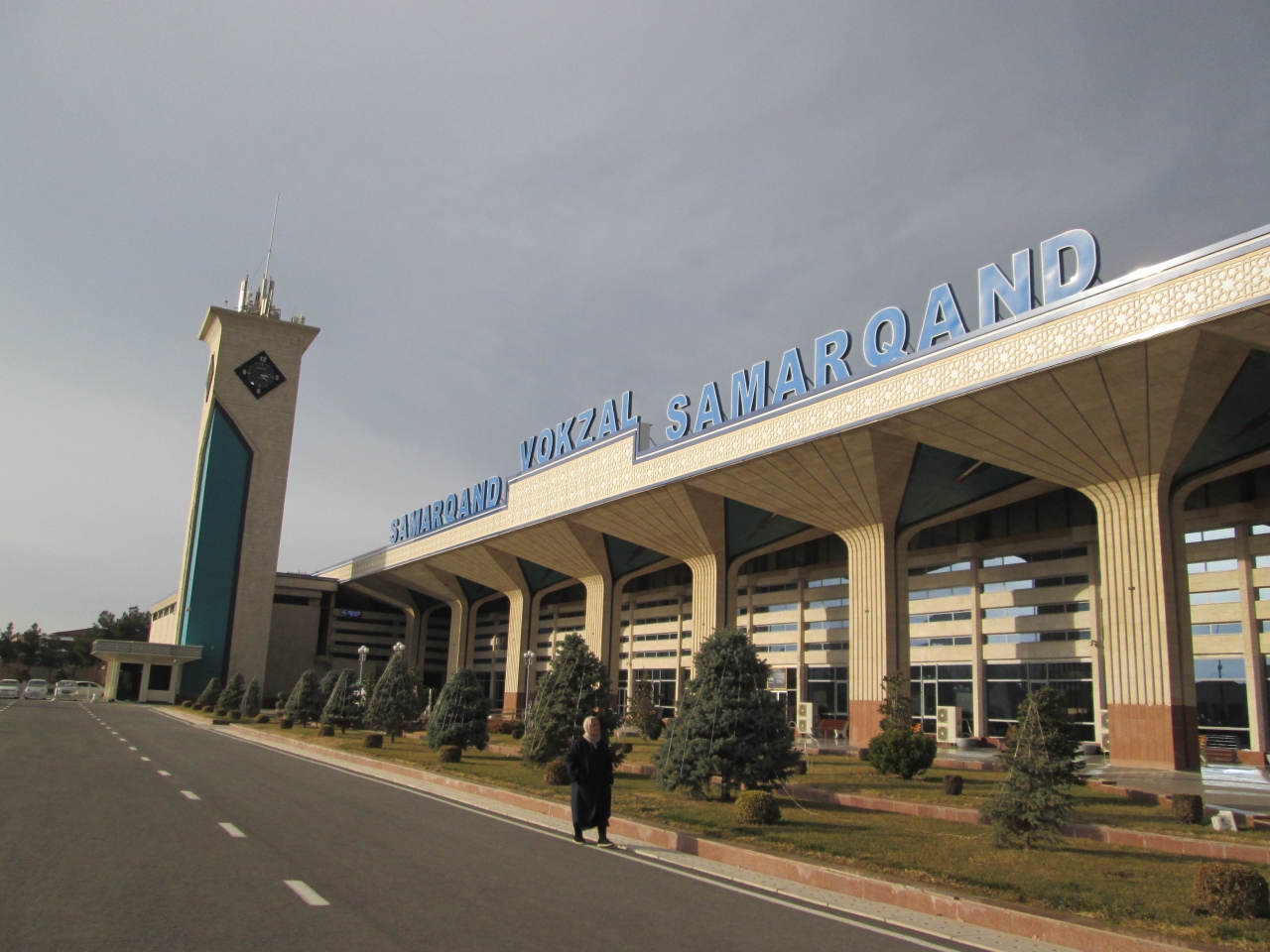 サマルカンドの旧市街からはタクシーで15分位の場所にある駅です。
