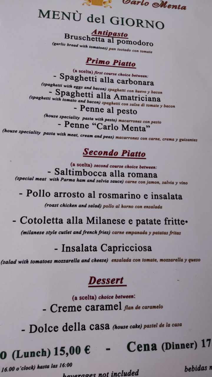 単品でもスパゲッティが8ユーロとお手頃です
