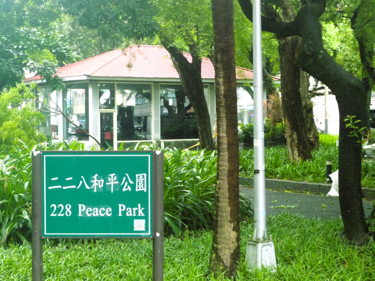 国立台湾博物館からの階段を出て、左側に<二二八和平公園>の看板がありました;蜂起した台湾住民(1947年2月28日)の追悼した公園です…慰霊碑/碑文/公園の名前も//1996年の`2月28日`です☆ 公園は池を見ながら散策し、幾つかの`樓閣(楼閣)`が眼に入りました;今は付近の人々が`憩いの公園;健康歩道も`+観光客の名所です♪