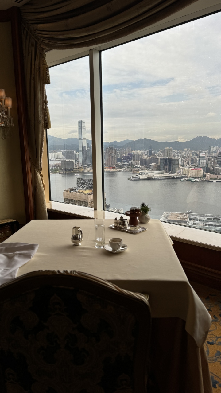 丘の上にあるアイランドシャングリラの最上階だけあって、景色が実にいい。調度品も品があってシャンデリアスにならない一歩手前というのが実にいい。マネージャークラスもここにはいるので、にこやかに挨拶してくれます。この会場は朝でもあまり混雑しないので、おすすめします。雰囲気が一番いいのはここですね。