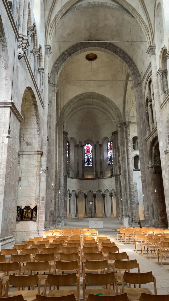外観がとても印象的で、素敵な教会。外からみても聳え立っていて目立つけど、中は天井が高く、どっしりした石造りで質実剛健な雰囲気。祈りの場といったかんじでだれもおらず、静かでした。旧市街側、ライン川からのどちらからもアクセスできます。