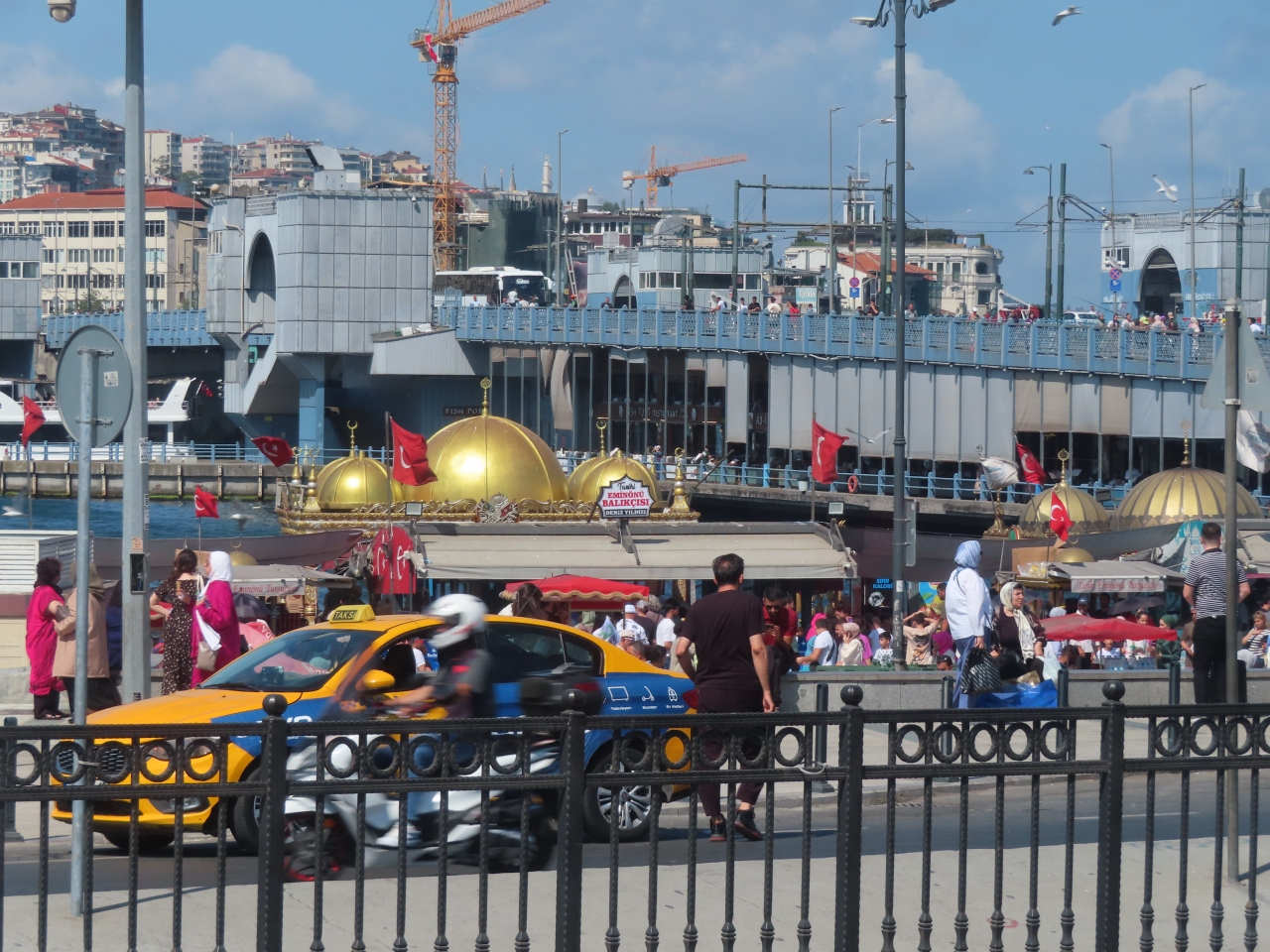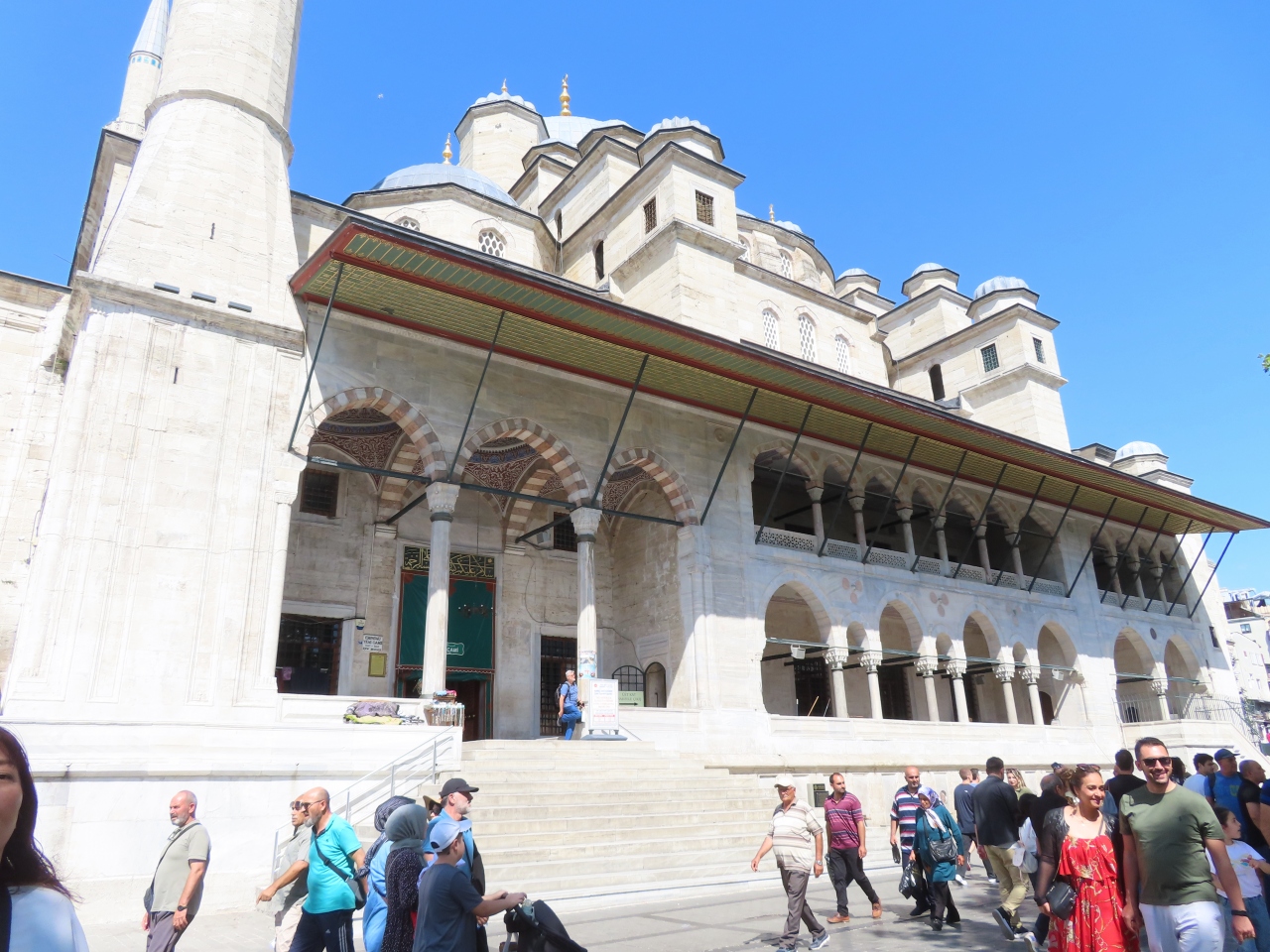 ツアーの観光で「エジプシャンバザール」に行きました。その目の前にあったモスクがこれ。ガラタ橋のたもと、人でいっぱいの観光スポットそのど真ん中の位置。しかし正式の宗教施設なので入場自由、礼節とマナーを守ってぜひ見学してください。