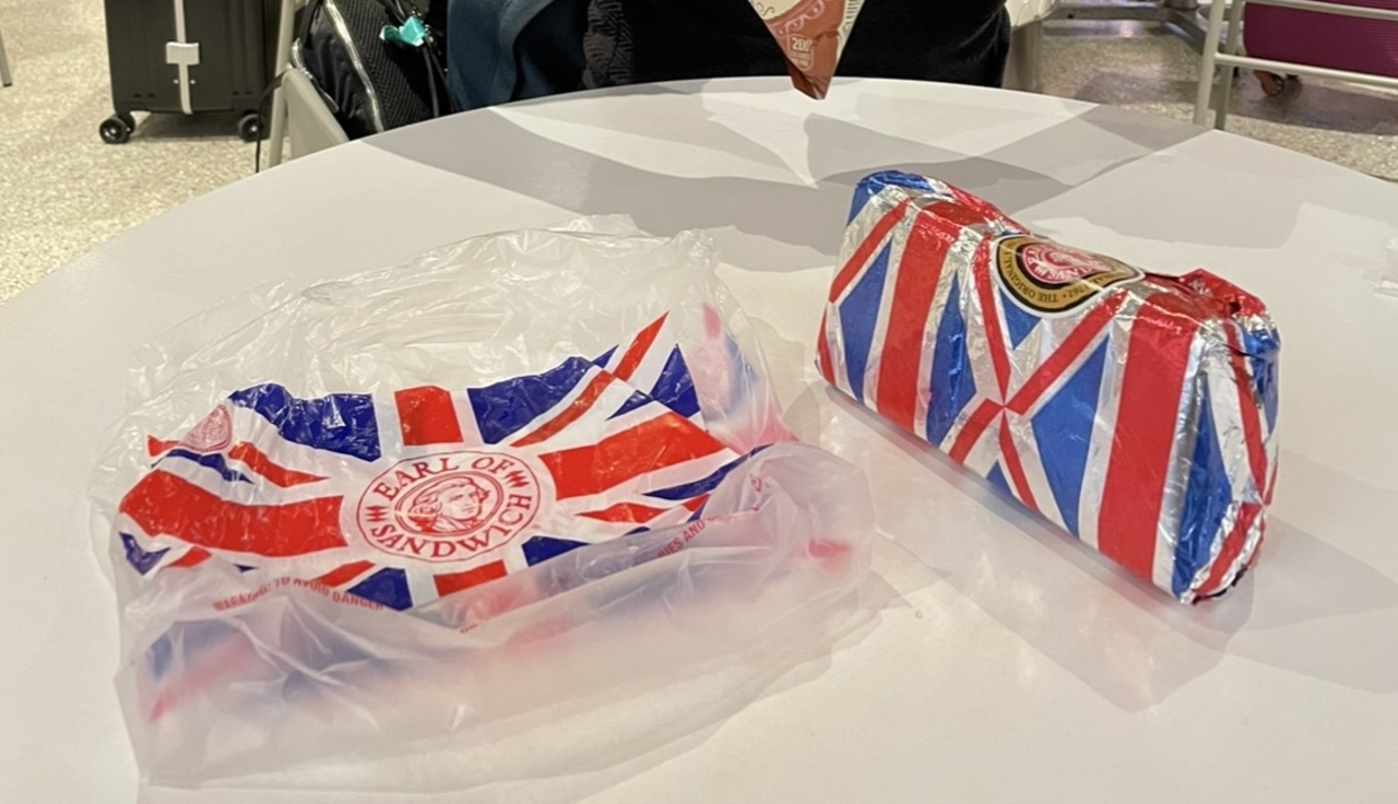 トムブラッドレーに到着し、有名なアールオブサンドイッチがあったので朝食にしました。他にもカフェなどあるため、出掛ける前の食事や休憩に使えます。アールオブサンドイッチのオリジナルはとても美味しかったです。ポテチも付いてきました。