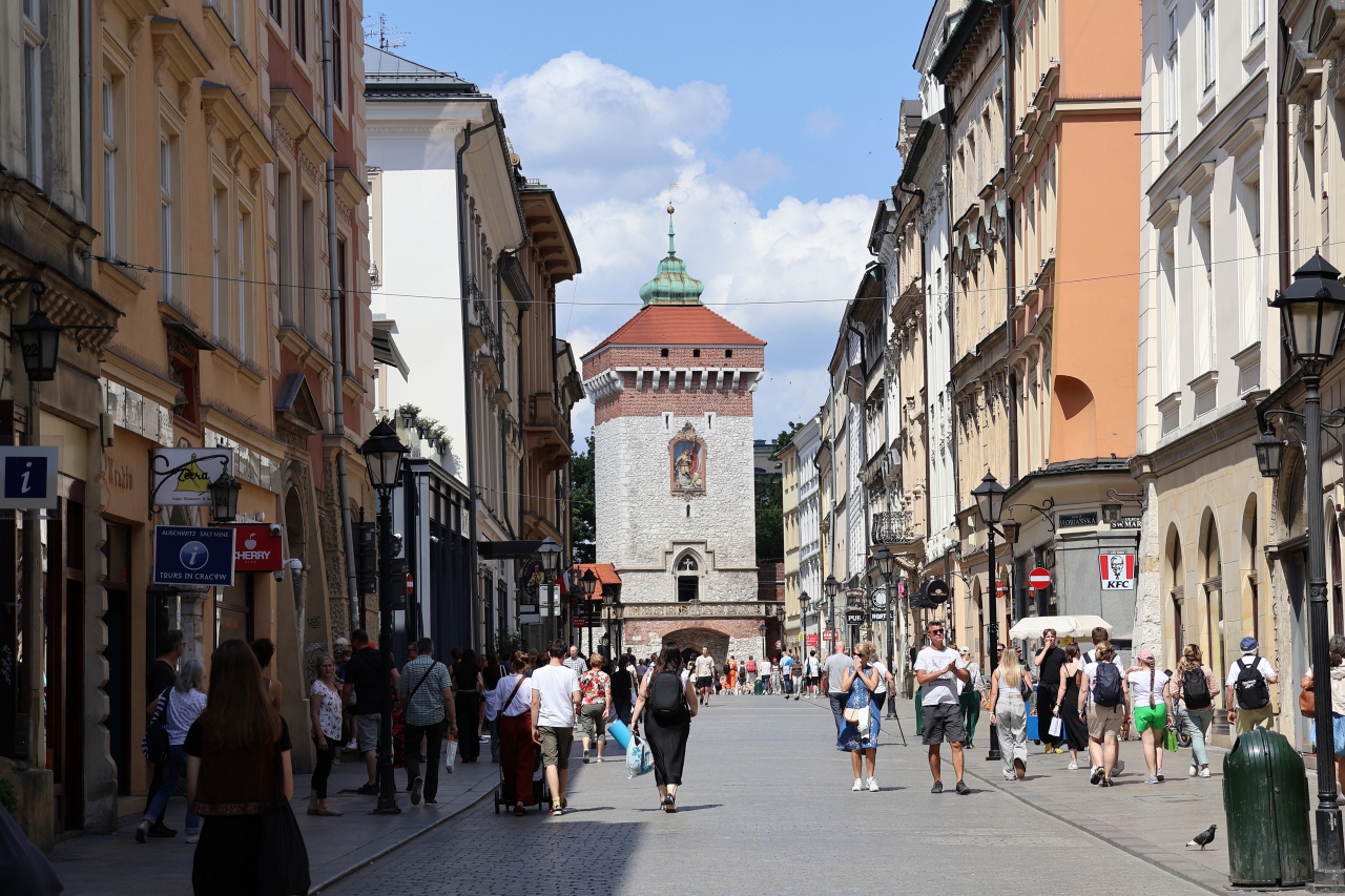 フロリアンスカ門から中央広場へと続くクラクフ旧市街のメインストリートです。