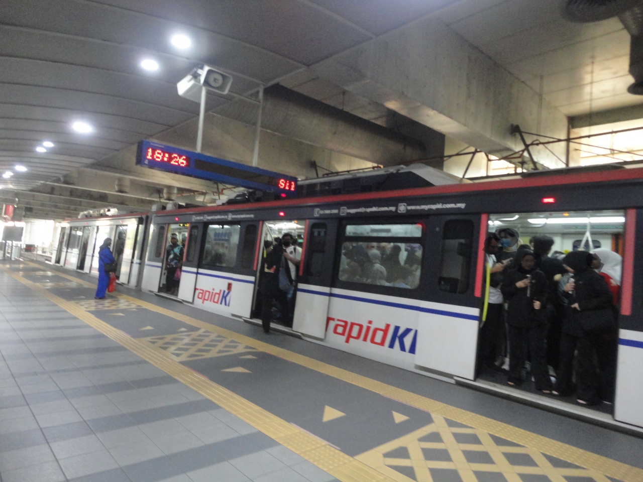 LRTの駅です。百貨店SOGOの裏側の出口を出たら、大通りを挟んだ向かいに高架の駅が見えました。連絡橋を進むと、すぐに辿り着きました。LRTは地上を走る区間もありますが、こちらの駅はかなり高い位置にあったので驚きました。平日の夕方頃に訪れたら、東京並みに混雑していました。