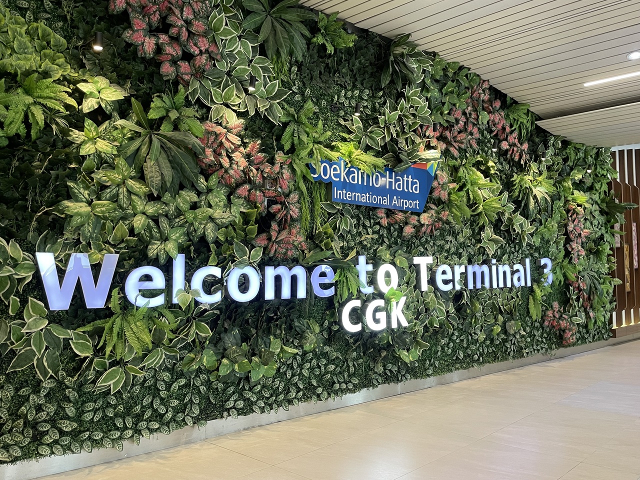 ターミナルは3つあります。日本からの全日空はターミナル3に到着。空港鉄道でジャカルタ市内に出ました。ターミナル間と空港駅の間にはスカイトレインが結んでいます。スカイトレイン、空港鉄道と乗り換え、時間がかかります。