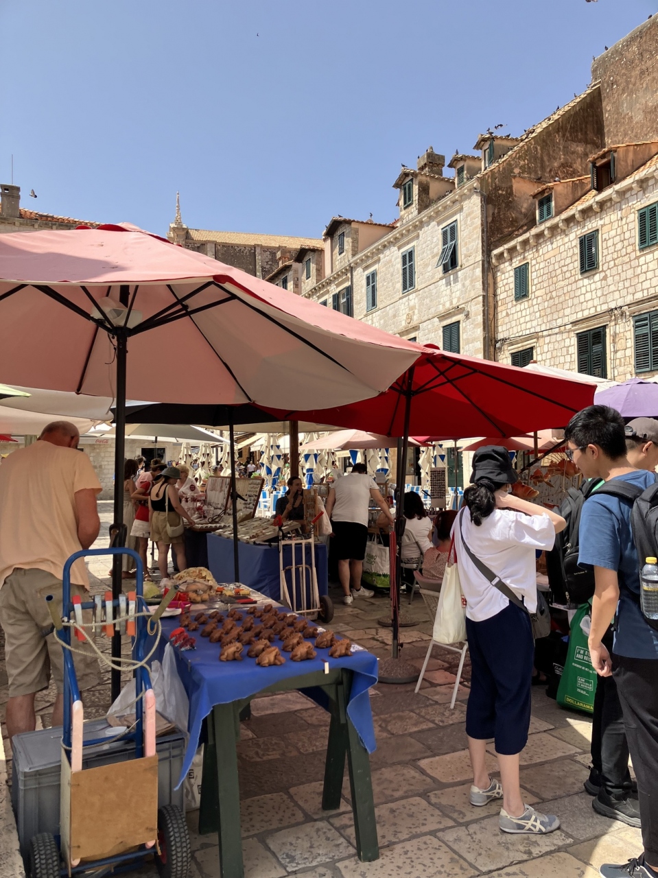 そんな人垣をかき分けてやっとたどり着いたら、すごく小さな市場でがっかり。暑かったせいか15店舗くらいの小さな店で主な売り物はクラフト品など。お土産にじっくり見れば良いものが見つかったかもしれませんが、あまりの暑さにチラチラ見て(暑さで)クラクラ来て、すぐに建物の日陰に。恐るべし夏の青空市場。