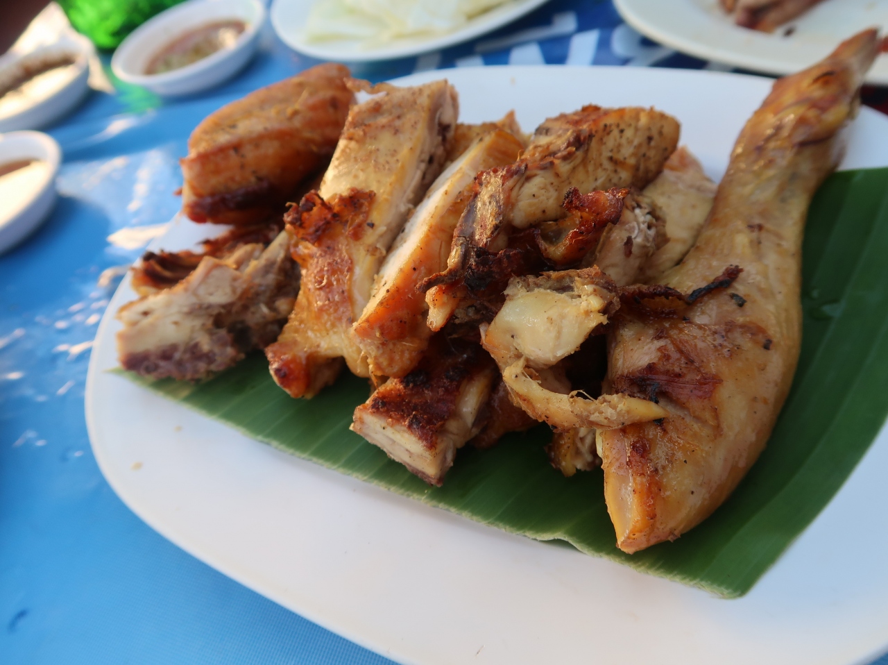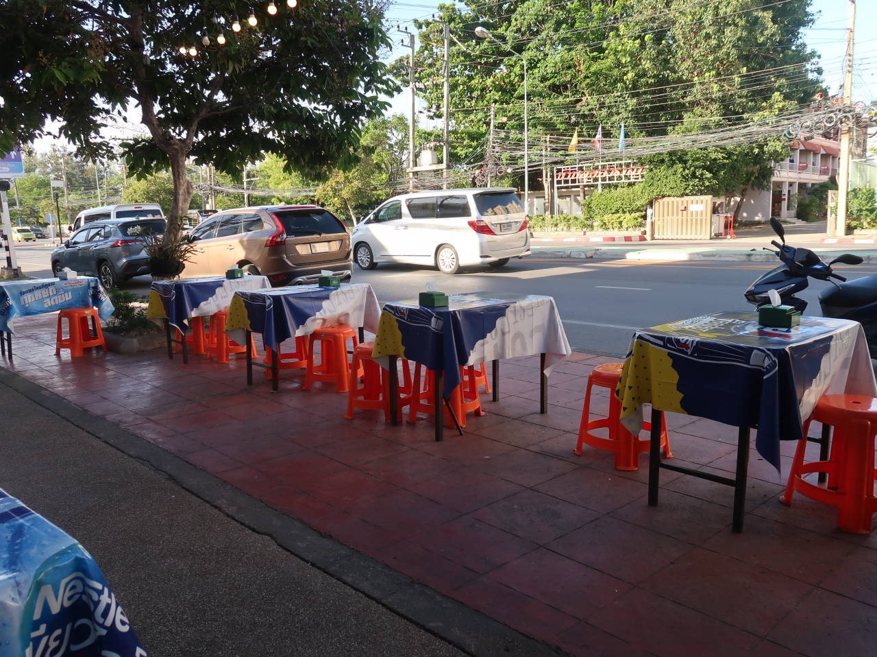 ケープニトラホテルの向かい側、閉店後の銀行前の歩道に出店。炭火焼のお店です。店舗を持たないからか、安価に美味しい料理が食べられます。ただし、混雑するので開店後の17時過ぎが狙いめです。ソムタムは辛さを聞いてくれました。焼き鳥はもちろん、エビ焼も衝撃のSサイズでした。