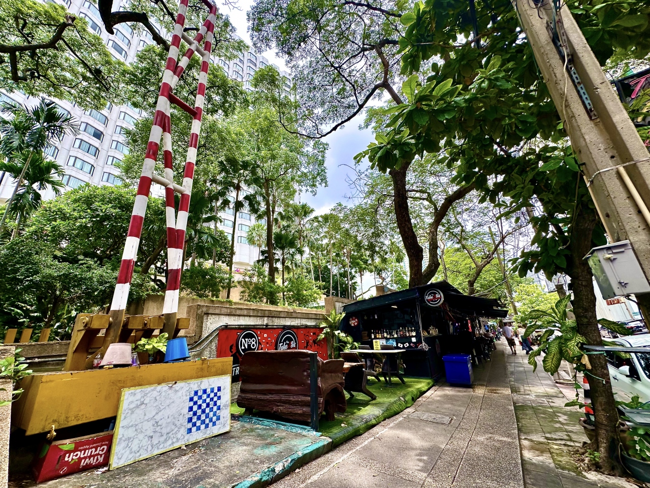 誰がここを手掛けたんだかは知らぬが、高級ホテルの前に広がる安レストラン街とこの掘立て小屋...