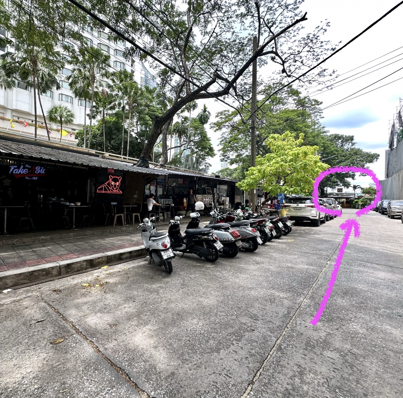 実は、ここ、5星:シャングリラホテルの真ん前の道奥にひっそりと佇むベストロケーション。