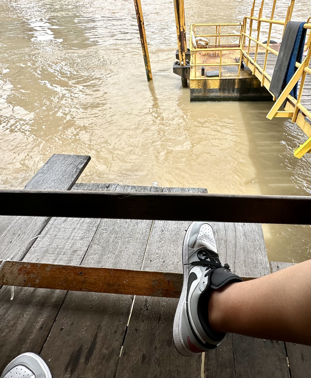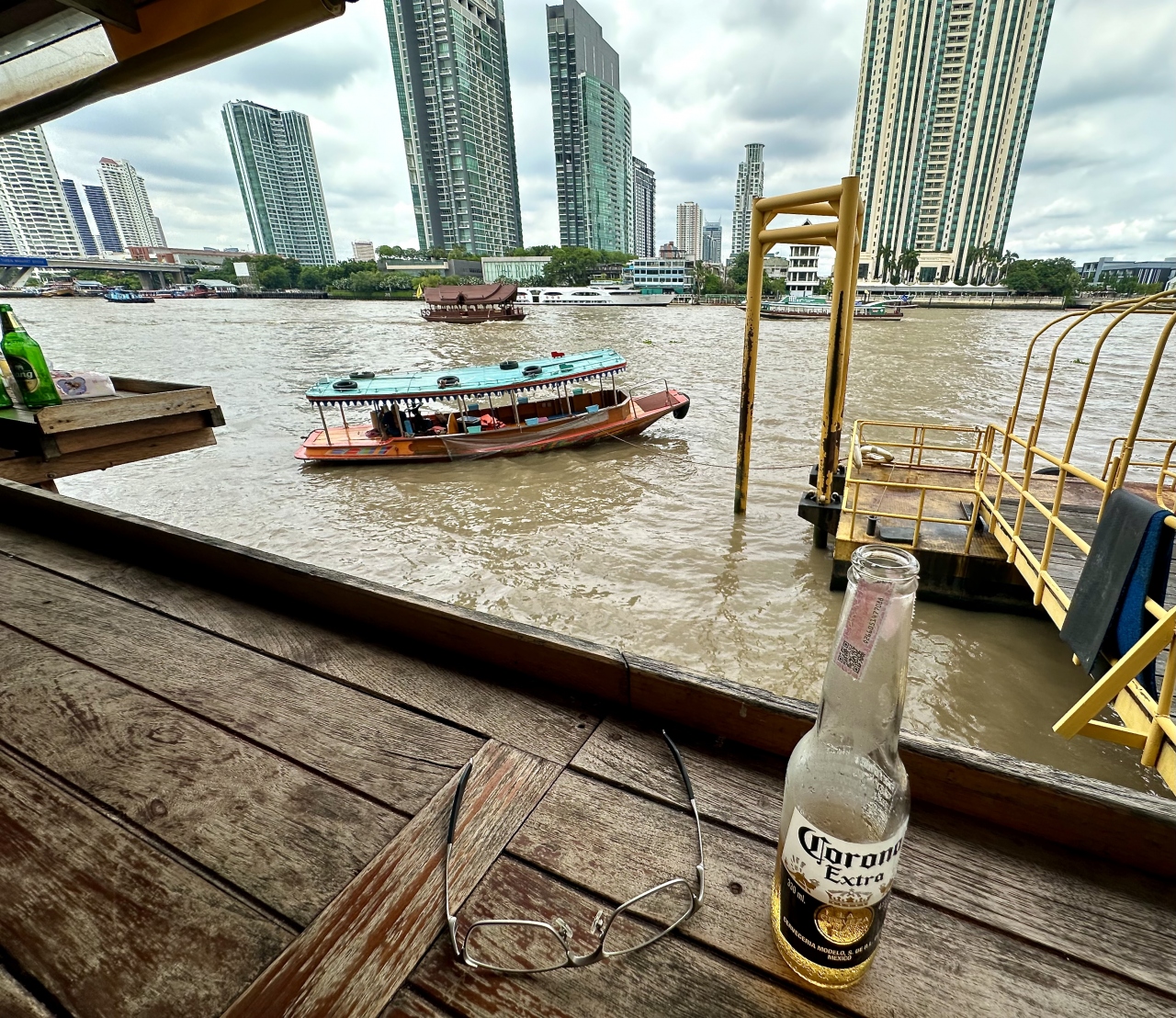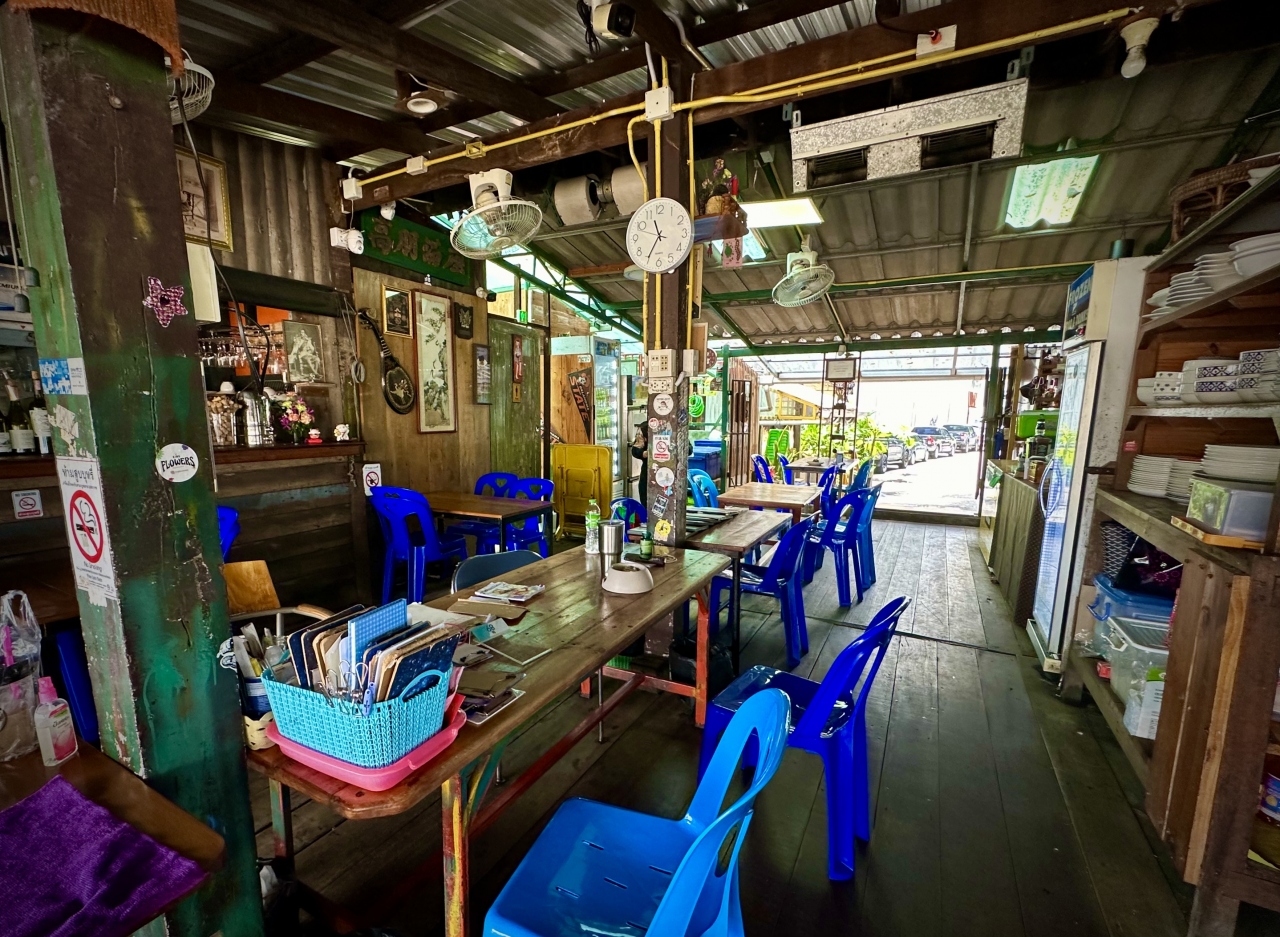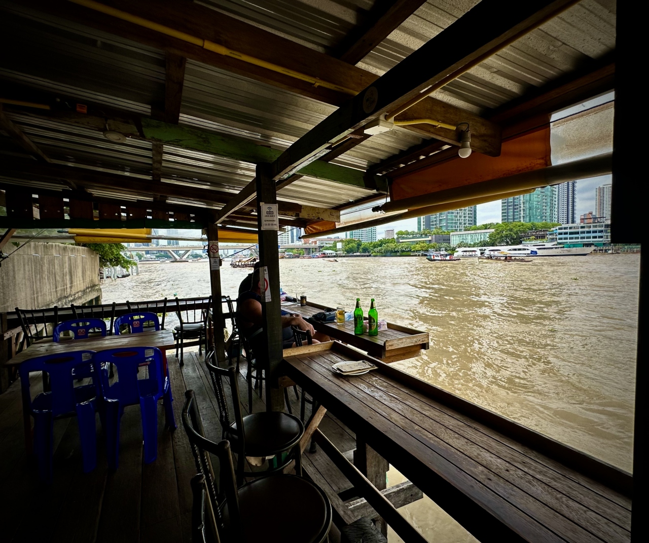 ボロボロで、足を踏み外すと(汚ねぇ)チャオプラヤー川に足が届いてしまいそうな迫り出し方で、最初はビビる。