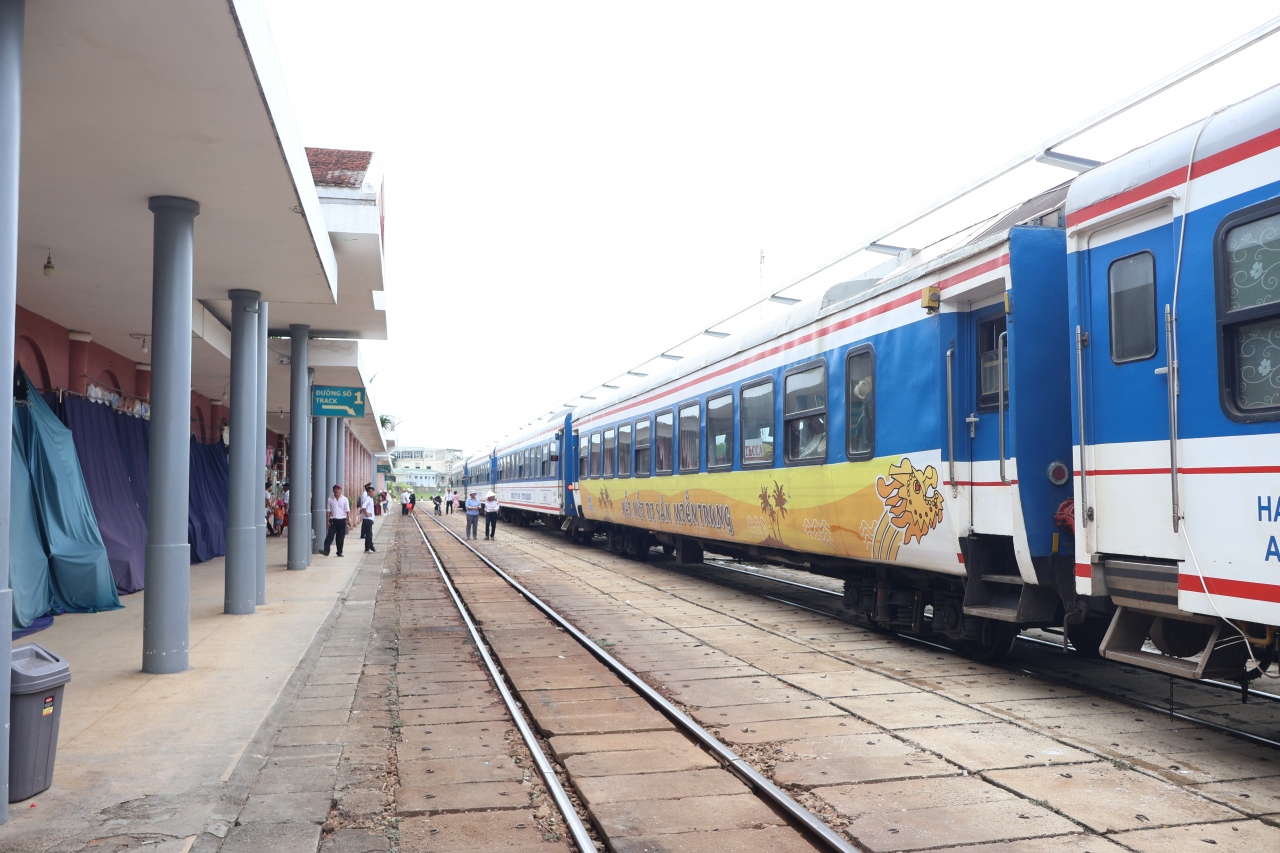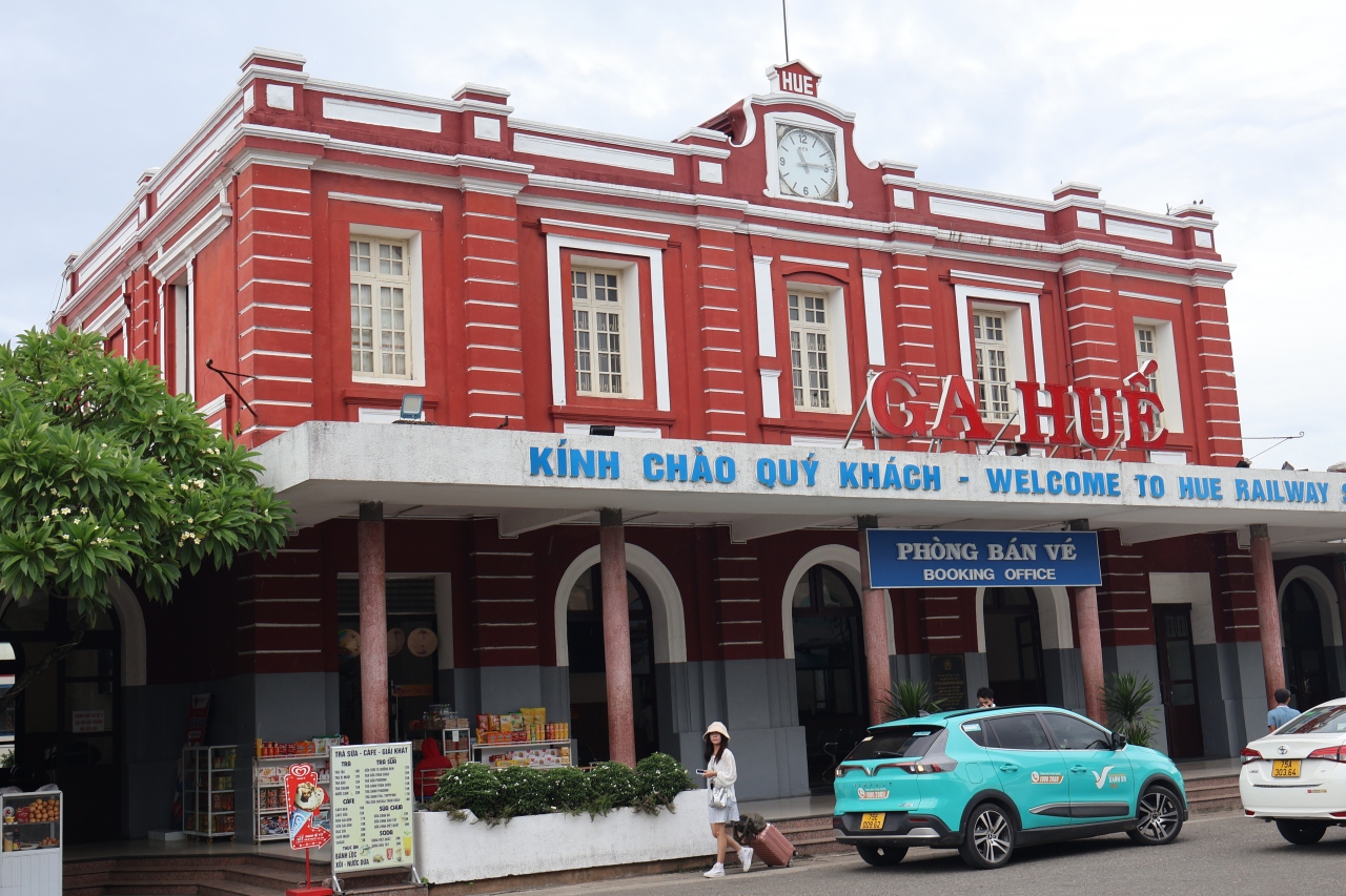 ベトナム南北統一鉄道を利用してダナン駅からフエ駅に到着しました、ベトナム中部の観光都市の駅なので利用者が多いです、ハノイやホーチミンからの列車利用者も多いようです、駅舎は古都フエらしい美しい駅舎です、新市街の南西にあり、フーン川に近いです、ツアー参加でしたのでここからフエの観光がスタートしました。