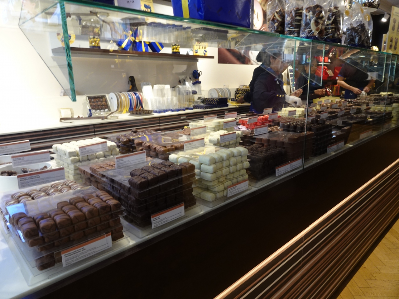 ギャルり・サンチュベールに入っていた「レオニダス」へ行ってきました。「レオニダス」はグランプラス近くにいくつも店舗があります。リーズナブルな価格で、美味しいチョコレートをたっぷり購入できました。試食もさせてもらえて、食べながら選ぶことができますよ!。私は袋にお好みを詰めてもらいましたが、100gで3.8ユーロ(たぶんそのくらいだった記憶が・・・)でした。ばらまき土産にもおすすめです。持ち帰りで崩れるのが心配ならば、少し高くはなりますが、箱入りもできます。王室御用達でリーズナブル。これは買っちゃいます!!。