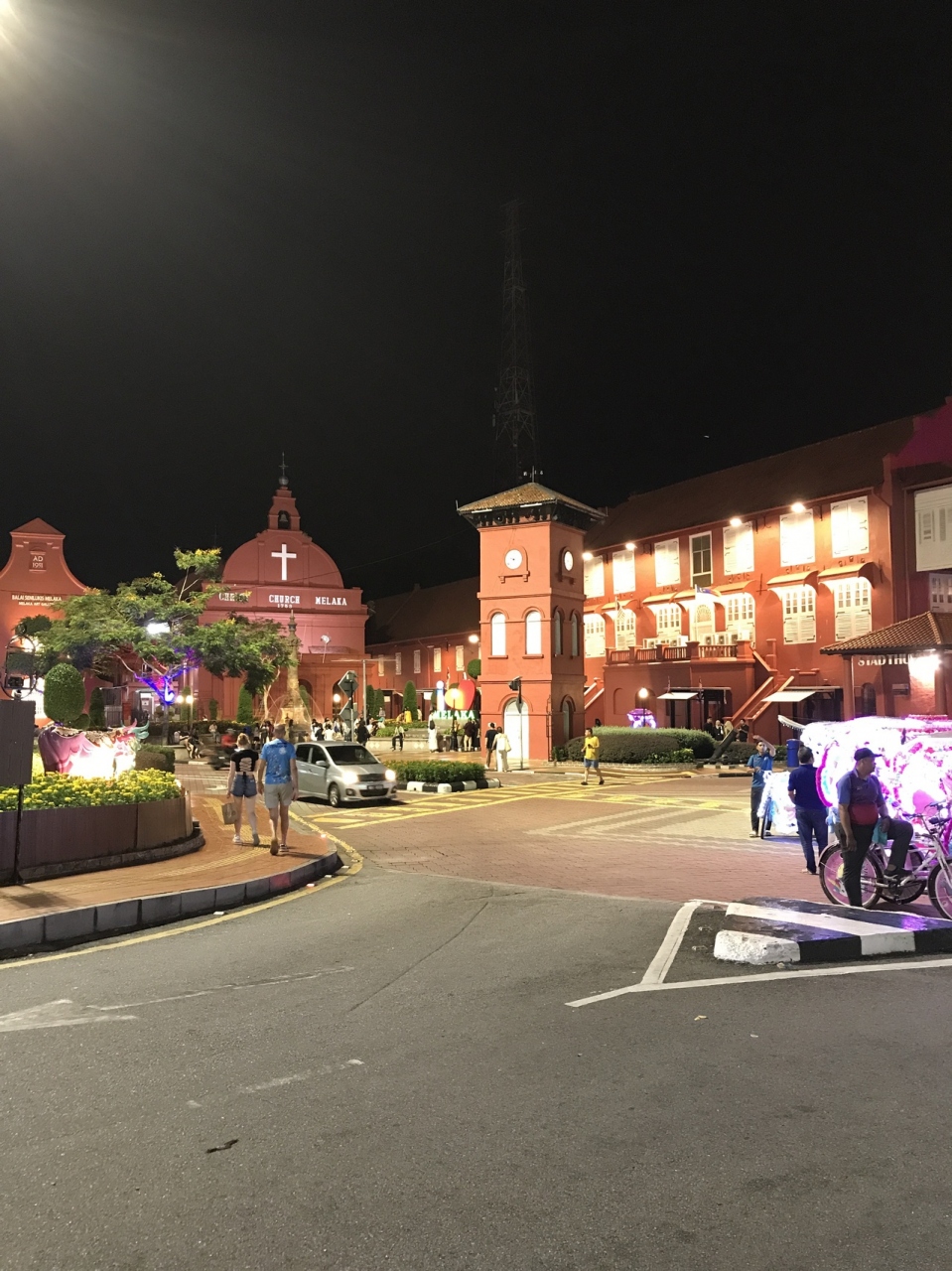 マラッカの中心オランダ広場にある時計台で教会やモニュメントに気を取られて当初気づきませんでした